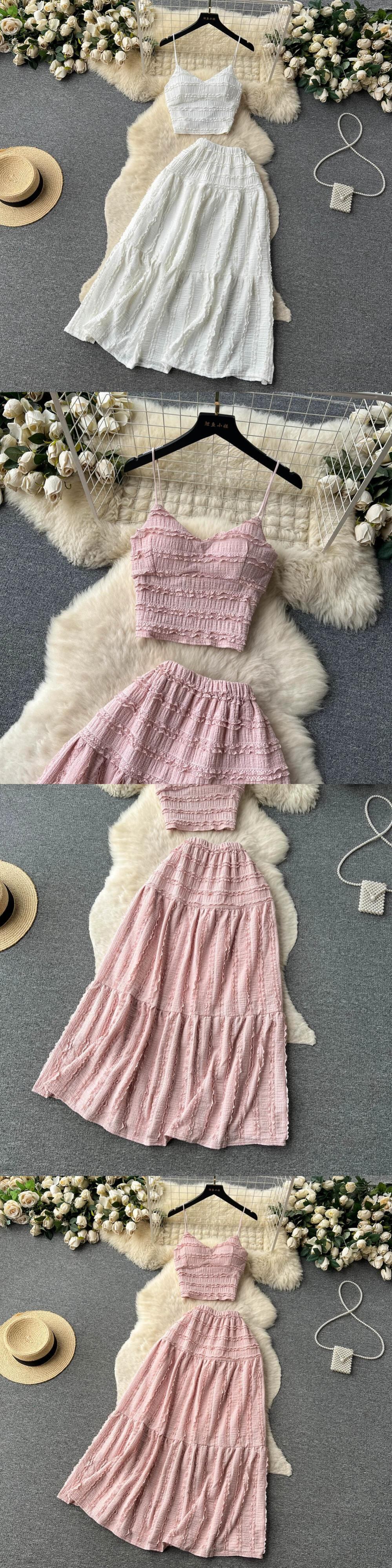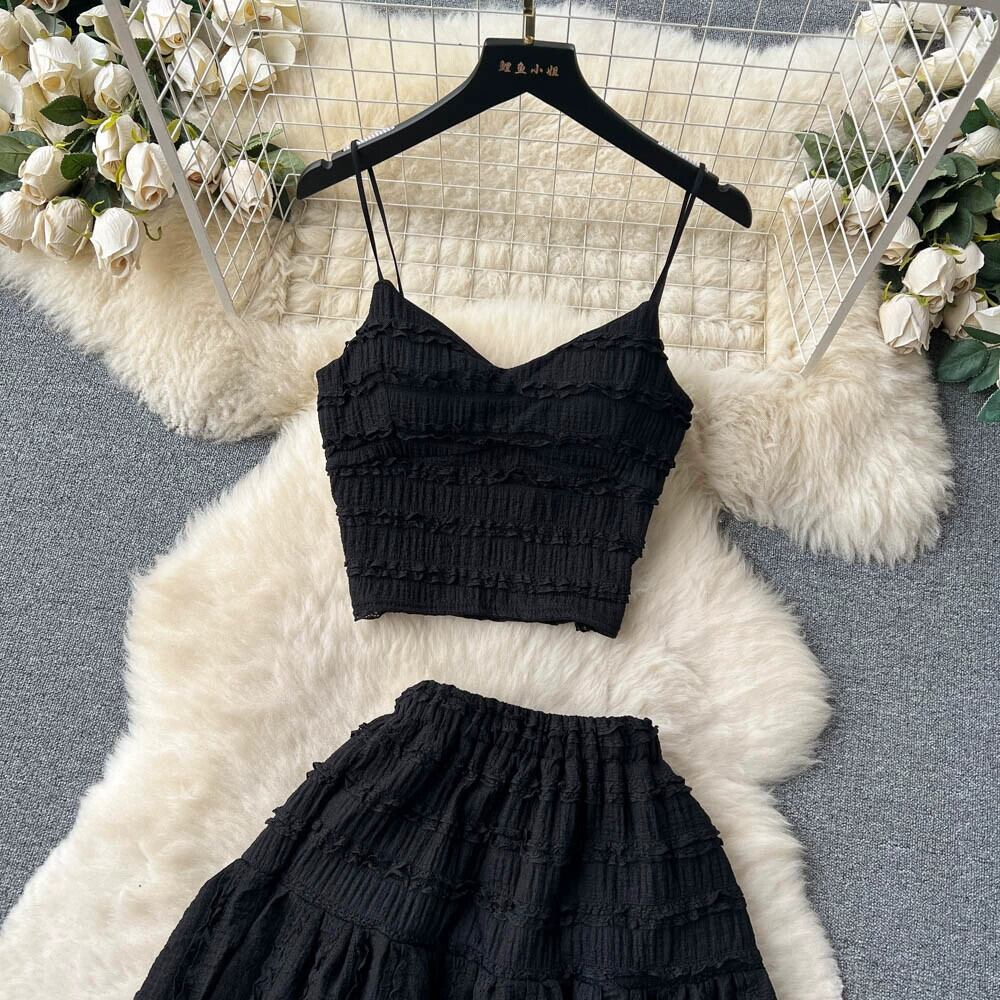 老化スーツの女性のサマードレス 2023 新しいサスペンダートップショートオールマッチビッグスイングスカート甘いツーピーストレンディ 大人ガーリー スウィート キュート カジュアル 夏物 lyxaj48548156457