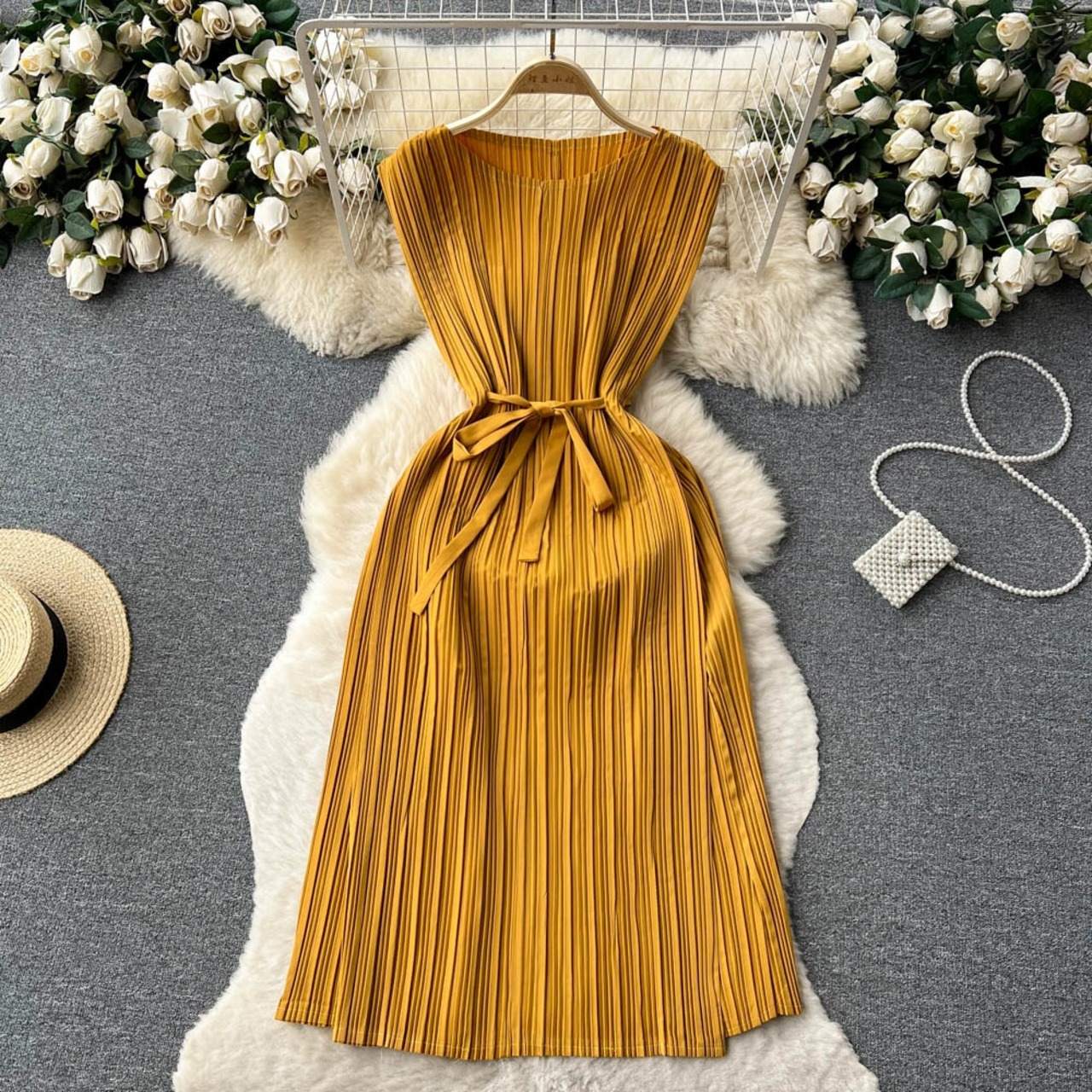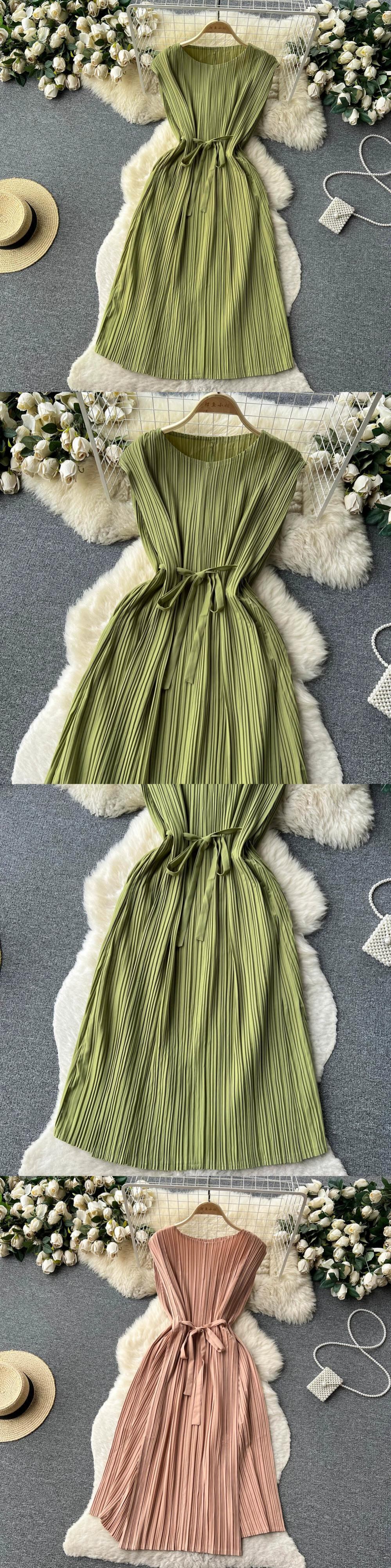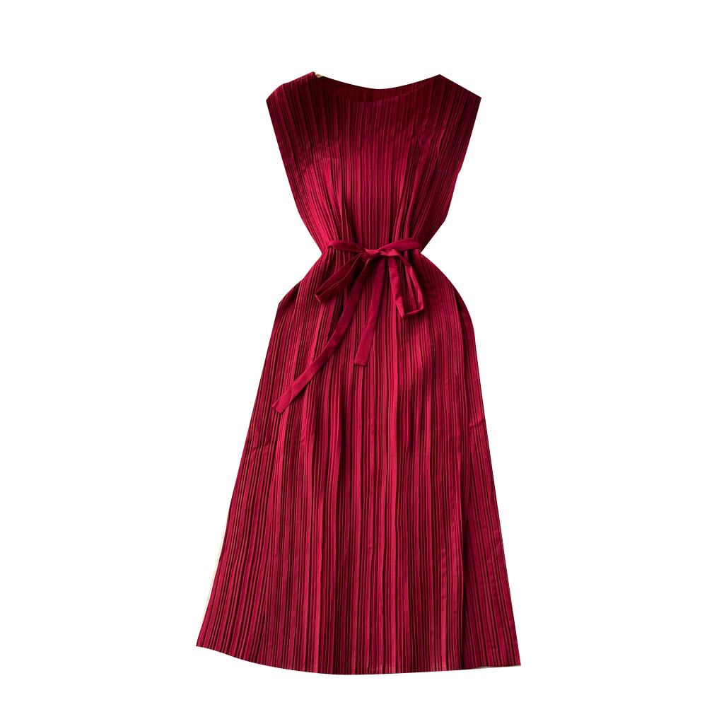 -エンド社交ドレス女性の夏の新しい重工業プレスプリーツシフォンスリムミッドレングスフレンチキキョウスカート サマー 夏物 lyxaj52804110082