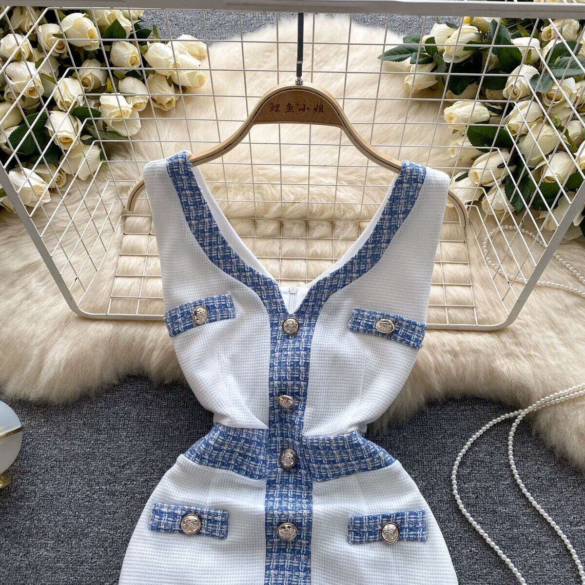 レトロな女性、小さな香り、ノースリーブのベストドレス、女性の高級な気質、修身、お尻、フランスの女性のスカート lyxaj75794452375