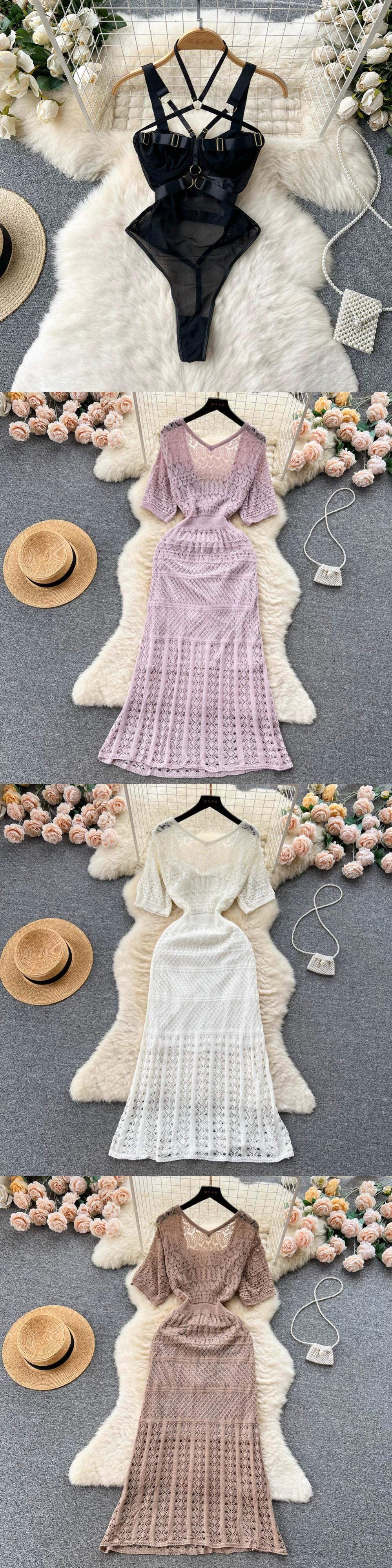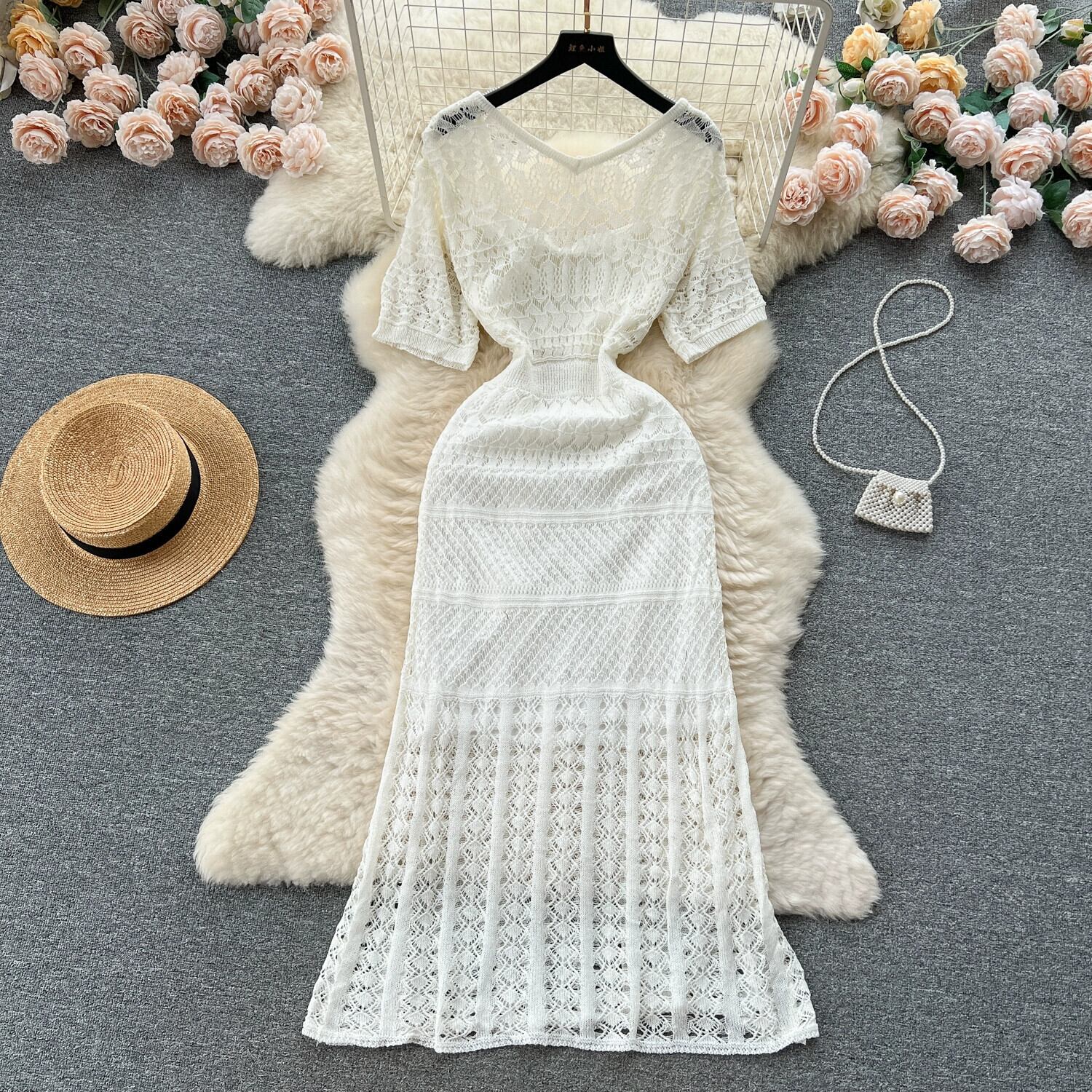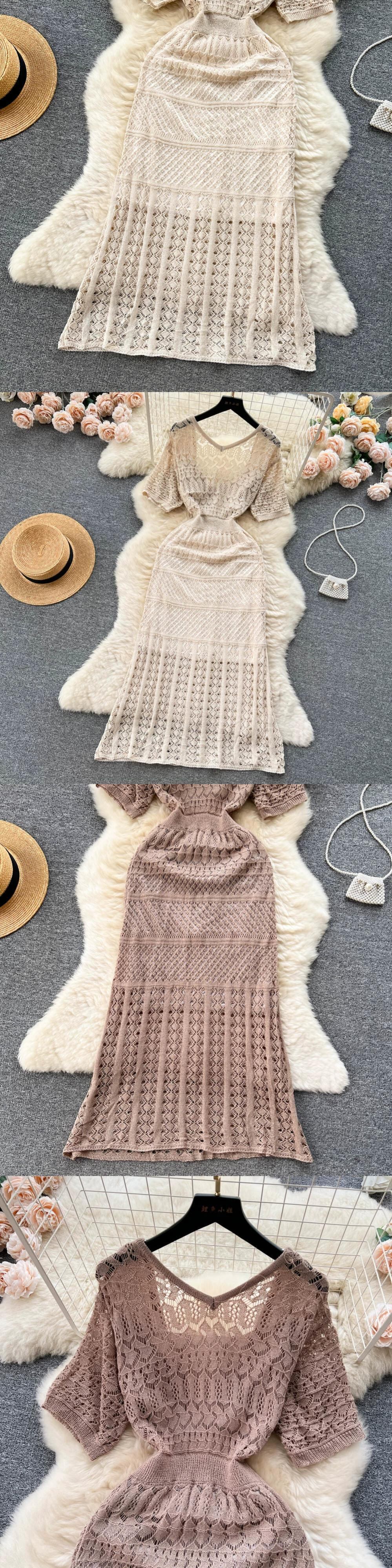 スパイスガール純粋な欲望スタイルニットドレス女性の夏中空かぎ針編み自己修養の感覚とウエストを示すセクシーなフィッシュテールドレス サマー 夏物 ピュア lyxaj75155754682