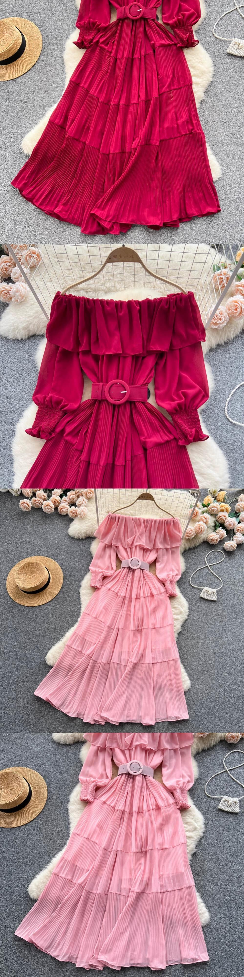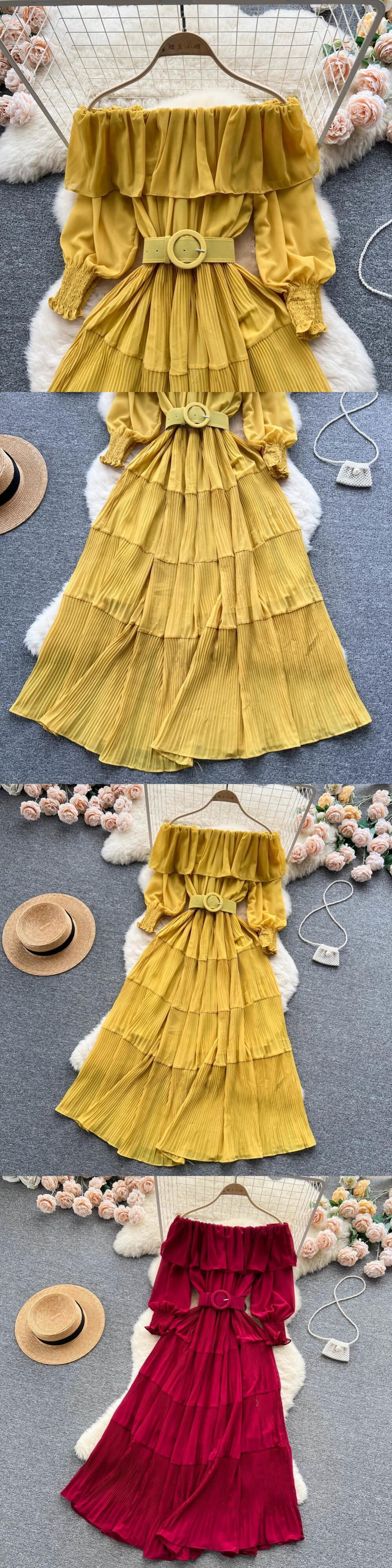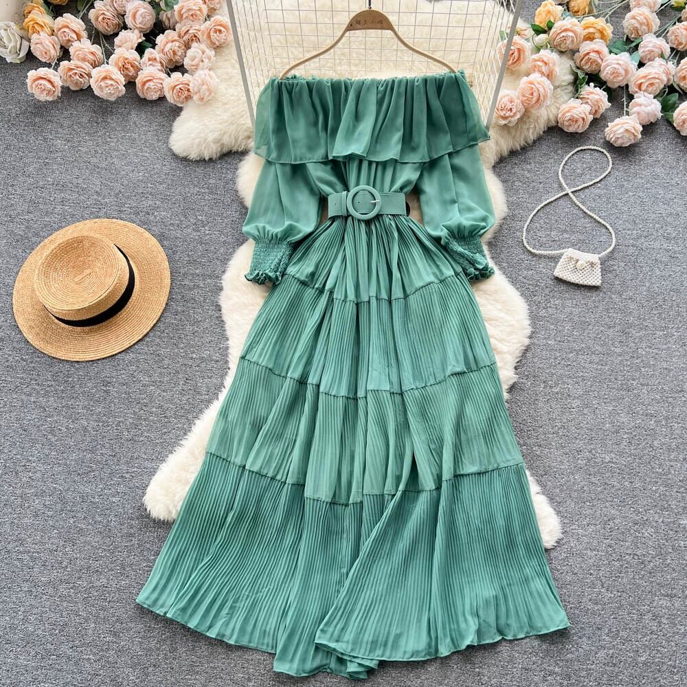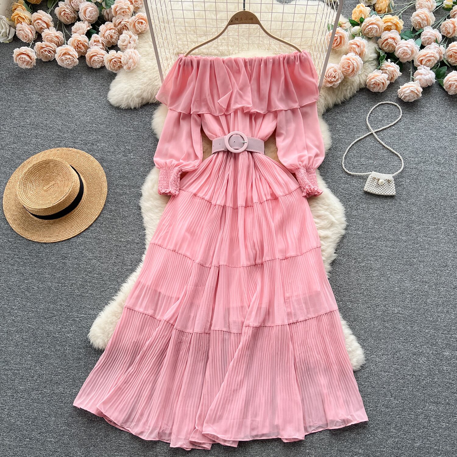レトロロマンチックなワンネックドレスレディースサマープリーツ甘くてシックなフランスの高級プリンセスドレス 大人ガーリー スウィート キュート カジュアル 夏物 lyxaj80145947953