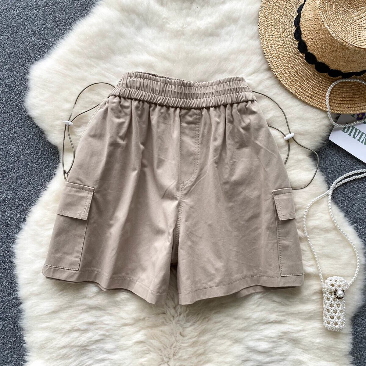 バージョンの婦人服 2023 新しいレディースカジュアルパンツハイウエストツーリング大きなポケットオールマッチスリムワイドレッグパンツショートパンツトレンディ ハイウェスト lyxaj40055319669