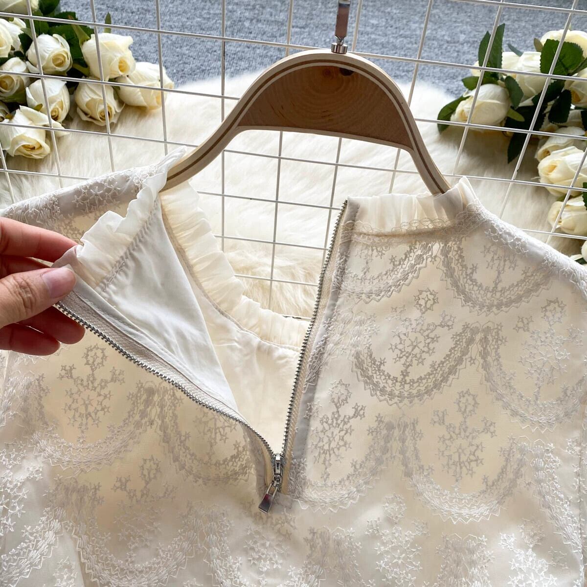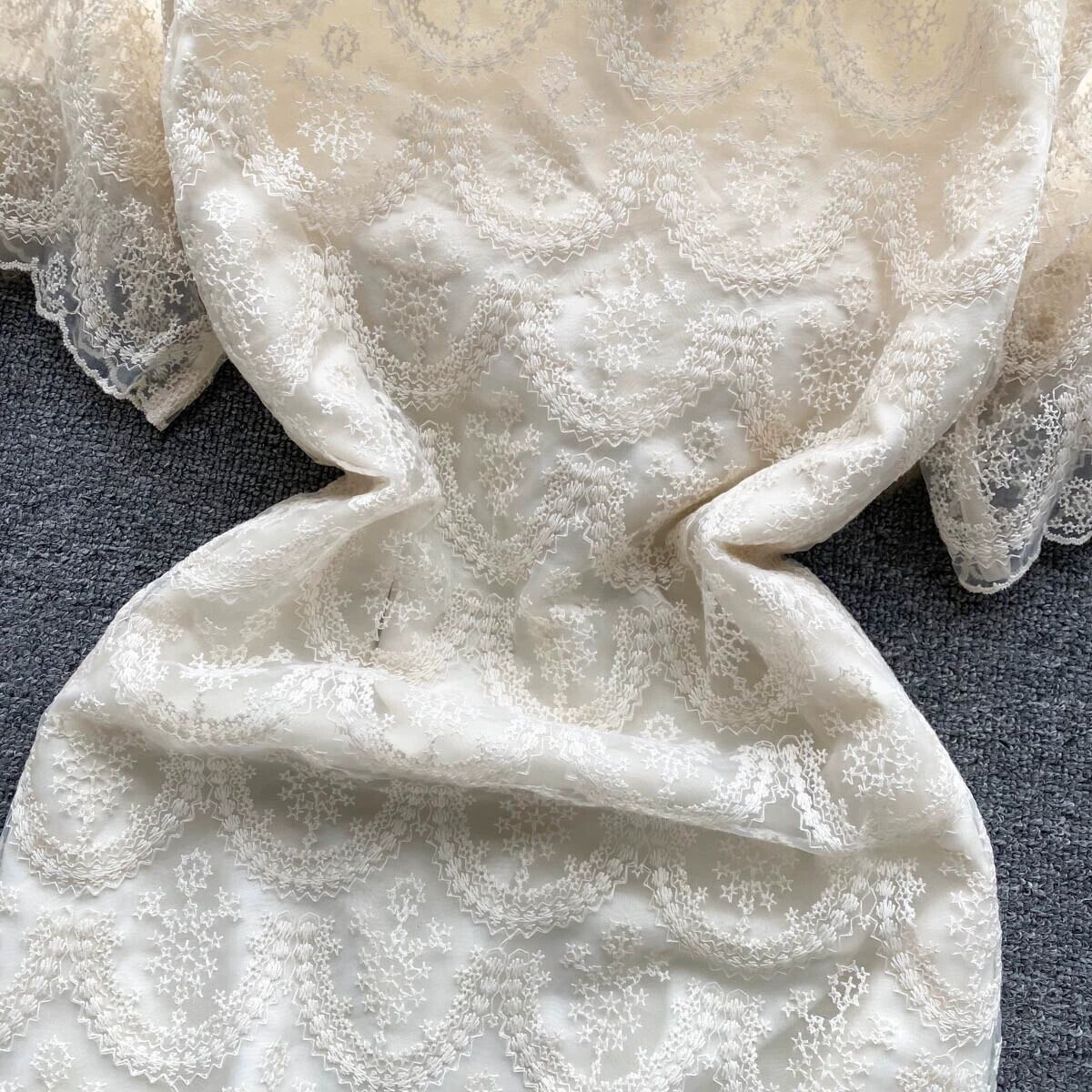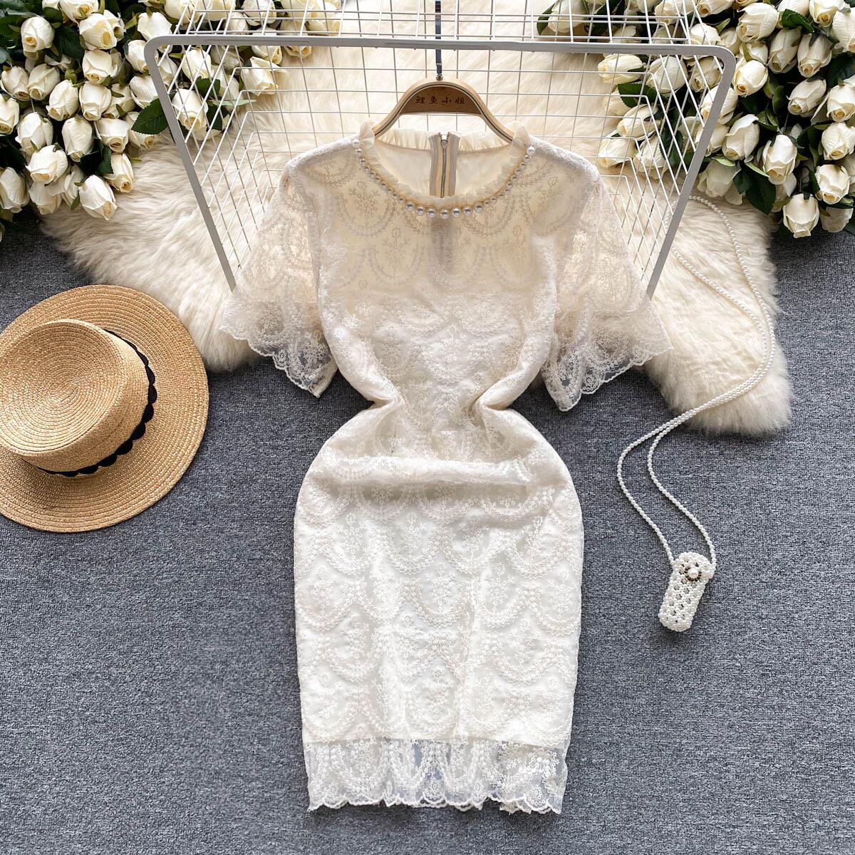 フランスのセレブのレトロなハイエンドの気質ビーズラウンドネックレースドレス女性の夏のスリムな気質aラインスカート サマー 夏物 Oネック lyxaj14949255827