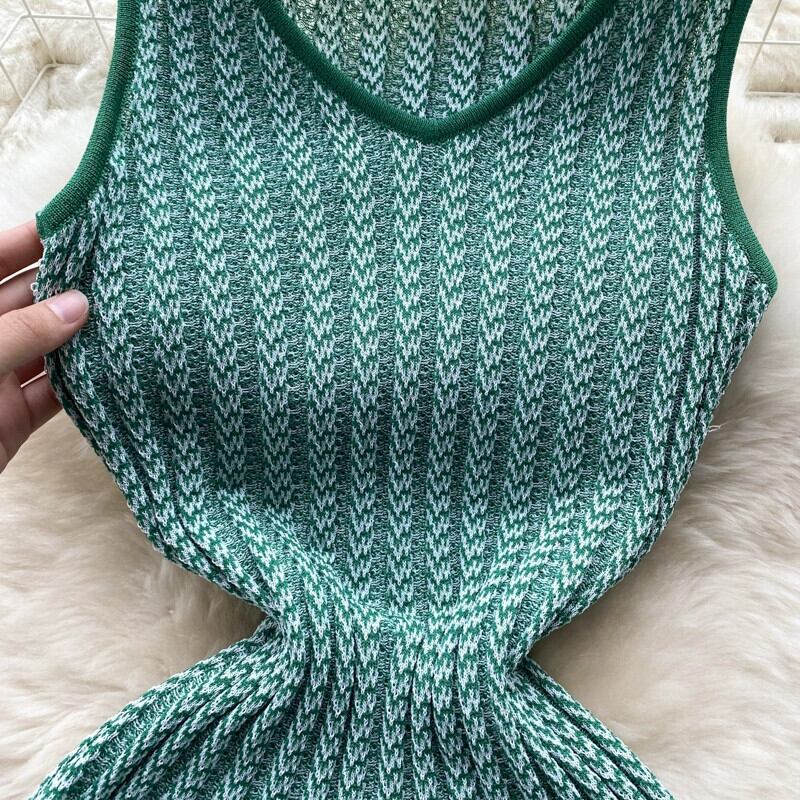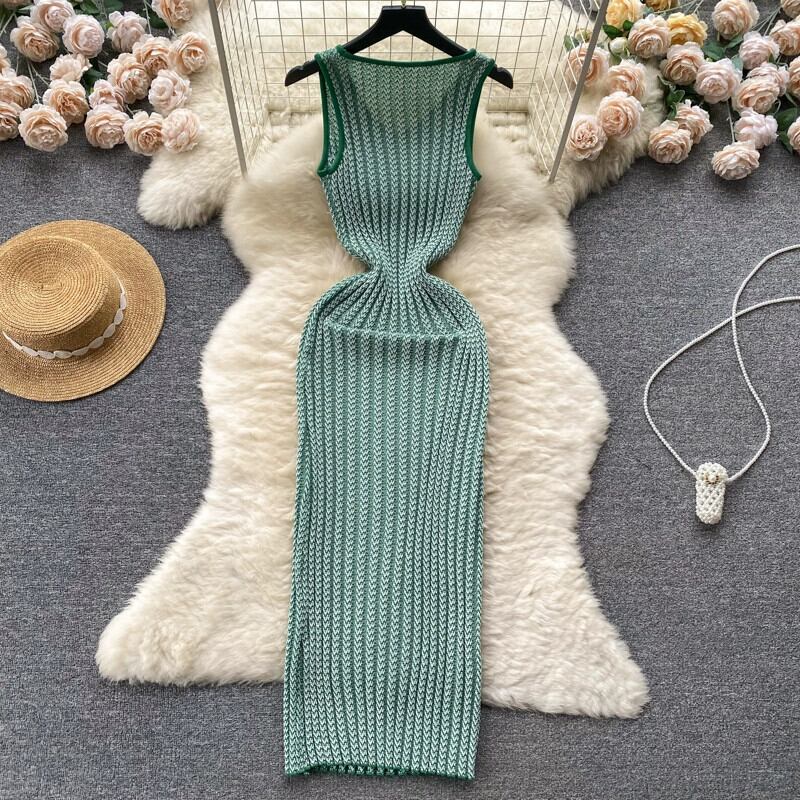 フランスのセレブスタイルのニットノースリーブドレスの女性の夏の純粋な色の気質ニッチライト高級ハイエンドベストロングスカート サマー 夏物 ピュア lyxaj58315262848