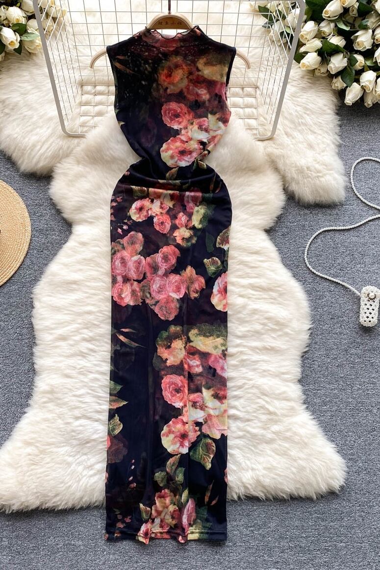 塩の摩耗と光の馴染みのドレス 2023 新しい女性のレトロなプリントスリムフィットロングヒップスカートノースリーブベストスカート lyxaj15740940245