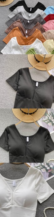 胸パッド付き半袖Tシャツレディース夏新作オールマッチ自己修養スリムハイウエストショートセクション純粋な欲望フロントショルダートップ ハイウェスト サマー 夏物 ピュア lyxaj2280597620