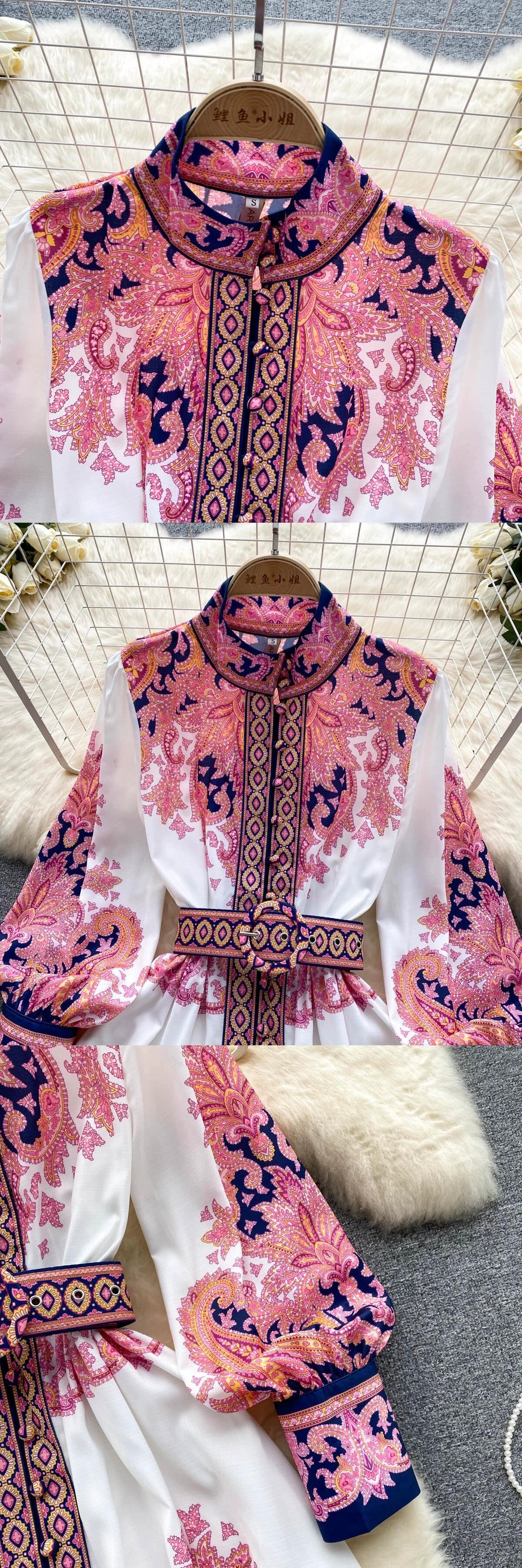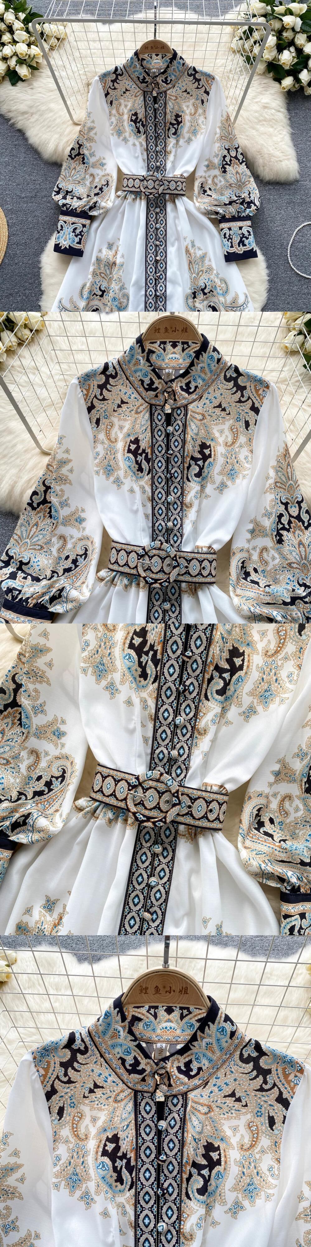 夏の新しい西洋スタイルの年齢削減ヨーロッパとアメリカの宮廷スタイルのレトロなドレスの女性のウエストランタンスリーブプリントスリムスカート サマー 夏物 ヨーロピアン lyxaj34684059497