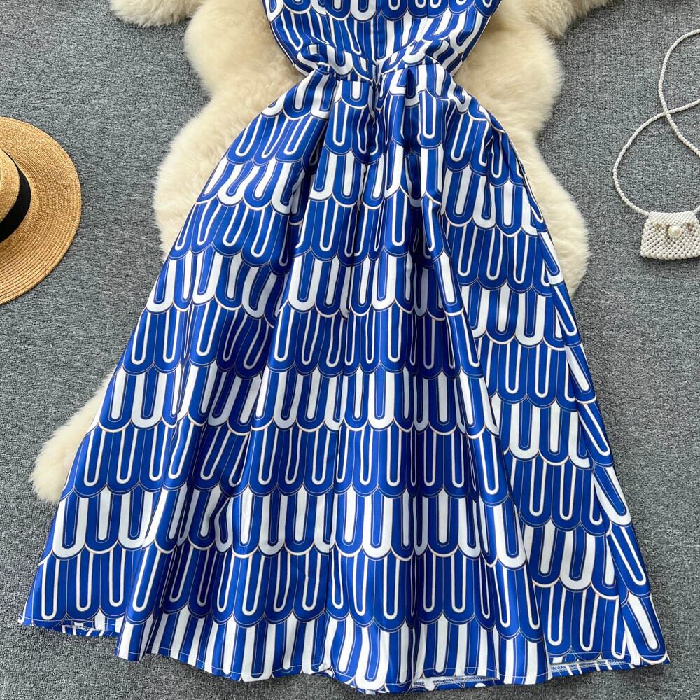 ヨーロッパとアメリカのハイエンドノースリーブベストドレス女性ウエスト気質女神ファンミンユアンスタイルプリントビッグスイングロングスカート ヨーロピアン lyxaj63072942132