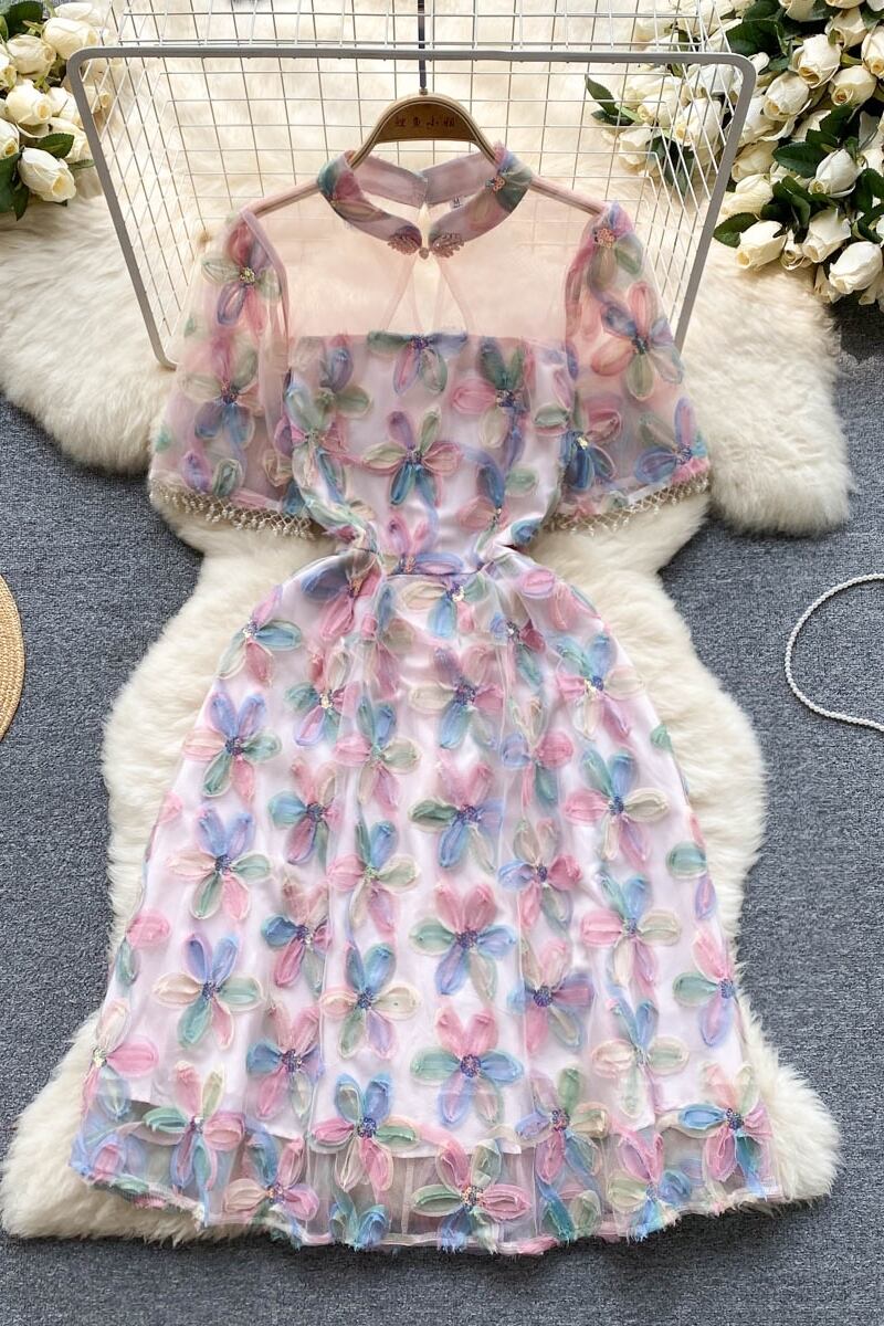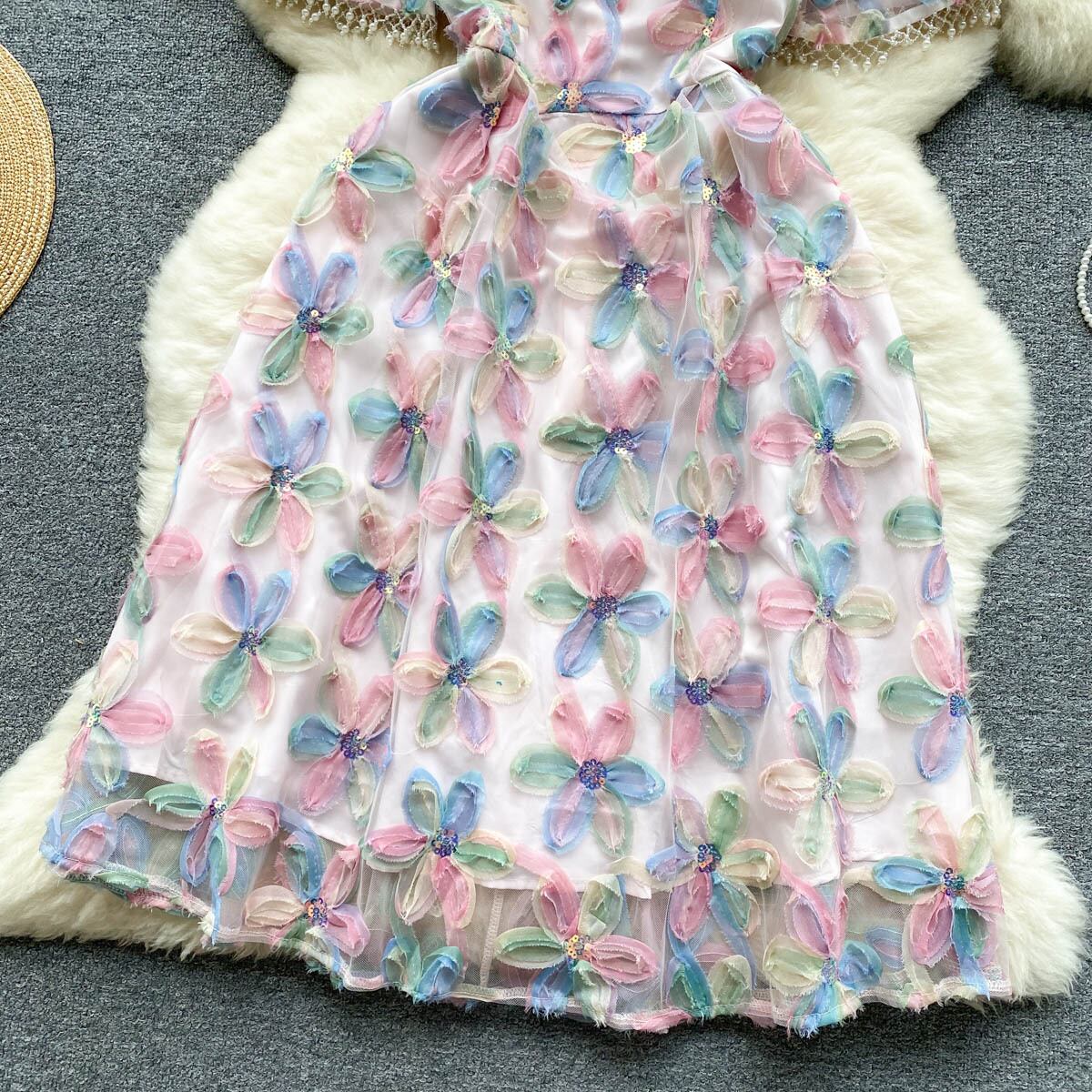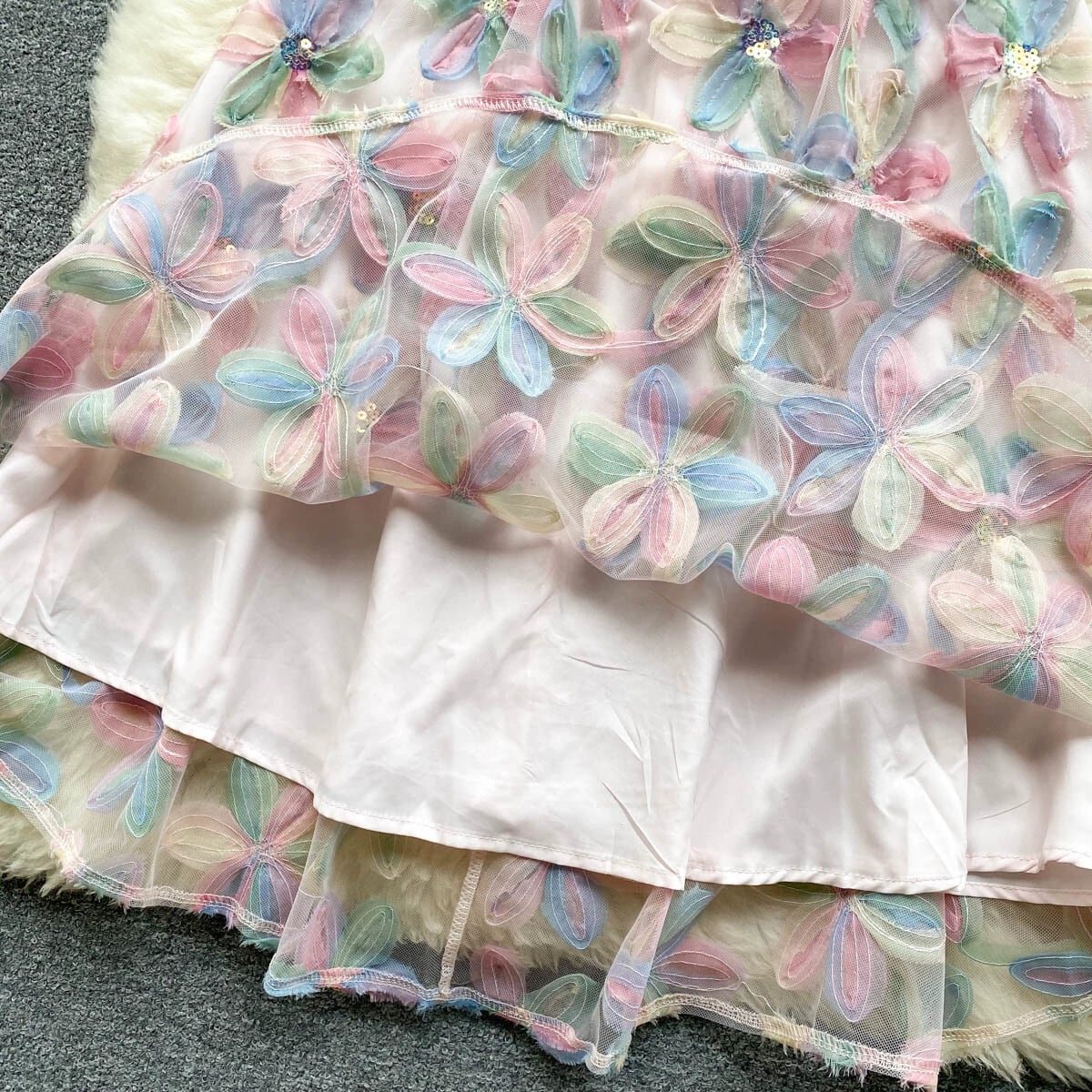 フランスの気質中空メッシュスプライシングスパンコール刺繍ドレス女性のウエスト痩身気質雰囲気感覚妖精スカート lyxaj47415223076