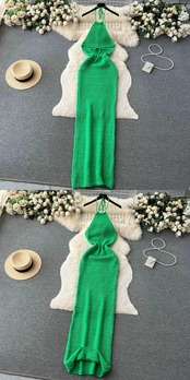 セクシーな背中の開いた中空吊りネックチューブトップドレス女性の夏の新しいヨーロッパとアメリカンスタイルのタイトフィットワンステップバッグヒップスカート サマー 夏物 ヨーロピアン lyxaj90054284598