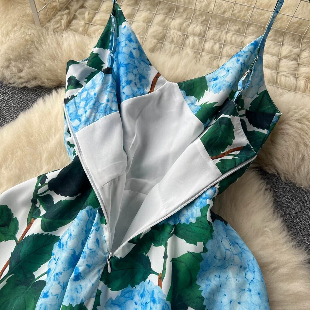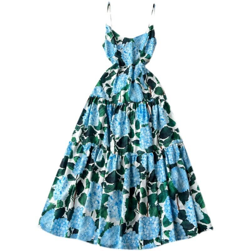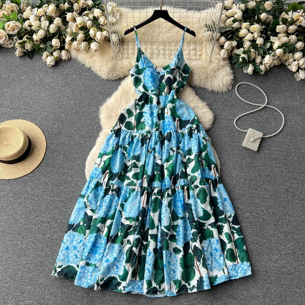 ノースリーブ花柄ドレス女性の夏の海辺の休暇プリントビーチウエストスリムスリング V スイングスカート サマー 夏物 lyxaj76421486408