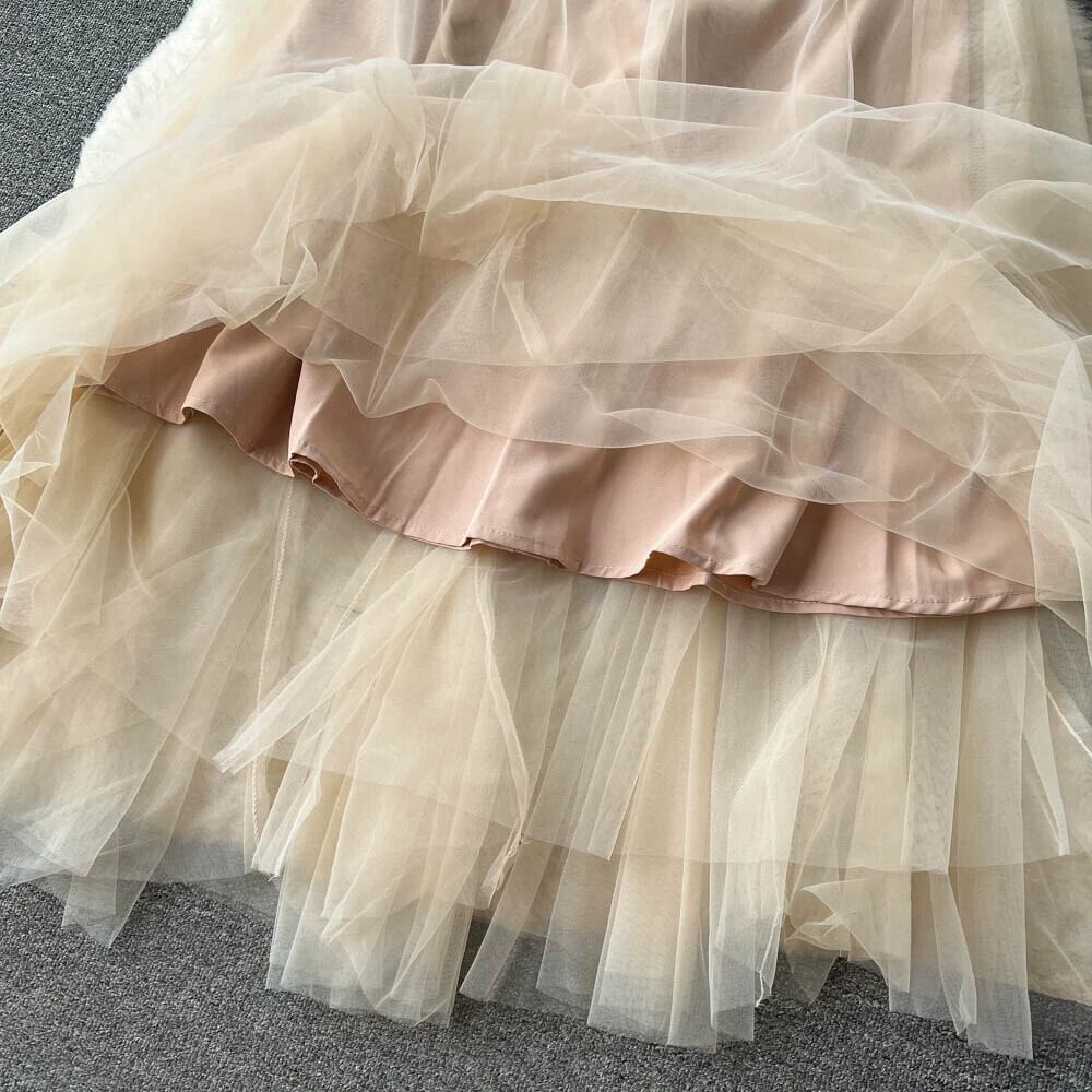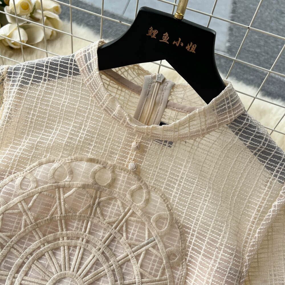 夏の新しいニッチデザインセンスセレブスタイルレース中空刺繍ドレス女性のネクタイスプライシングメッシュスカート潮 サマー 夏物 lyxaj18371486350