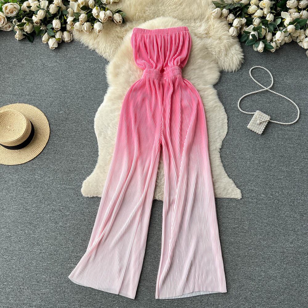 ヨーロッパとアメリカンスタイルのシックなニッチデザインチューブトップジャンプスーツ女性の夏のグラデーションカラーウエストワイドレッグジャンプスーツ サマー 夏物 ヨーロピアン lyxaj55708173980
