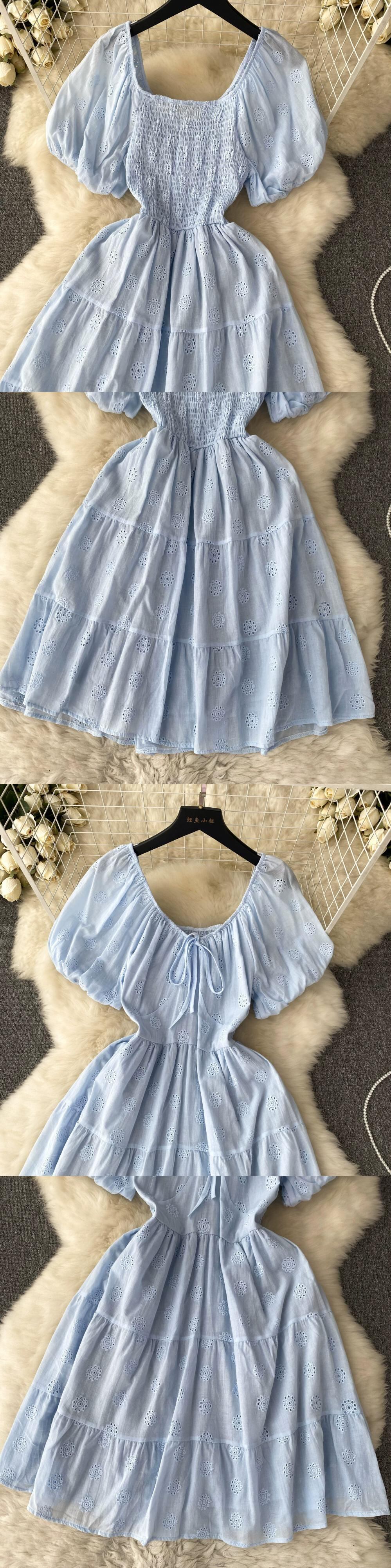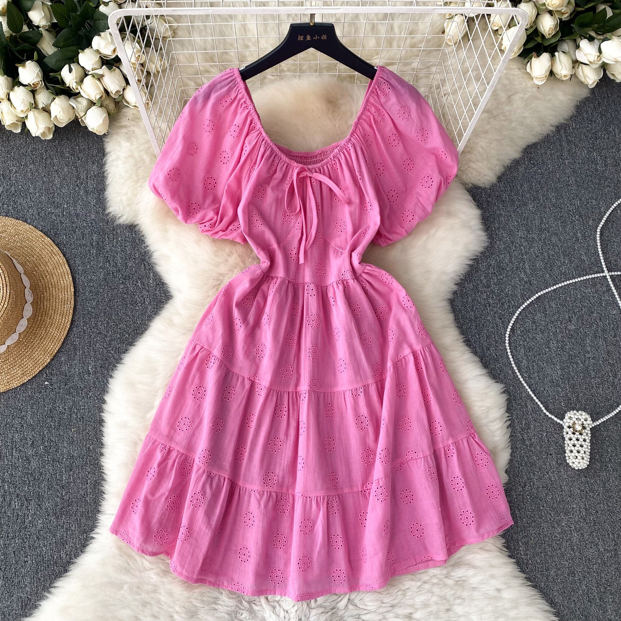 フレンチパフスリーブ V ネックホワイトドレス女性の夏の 2023 新しい小さな白いドレス小さなウエストスカート サマー 夏物 Vネック lyxaj21201876298