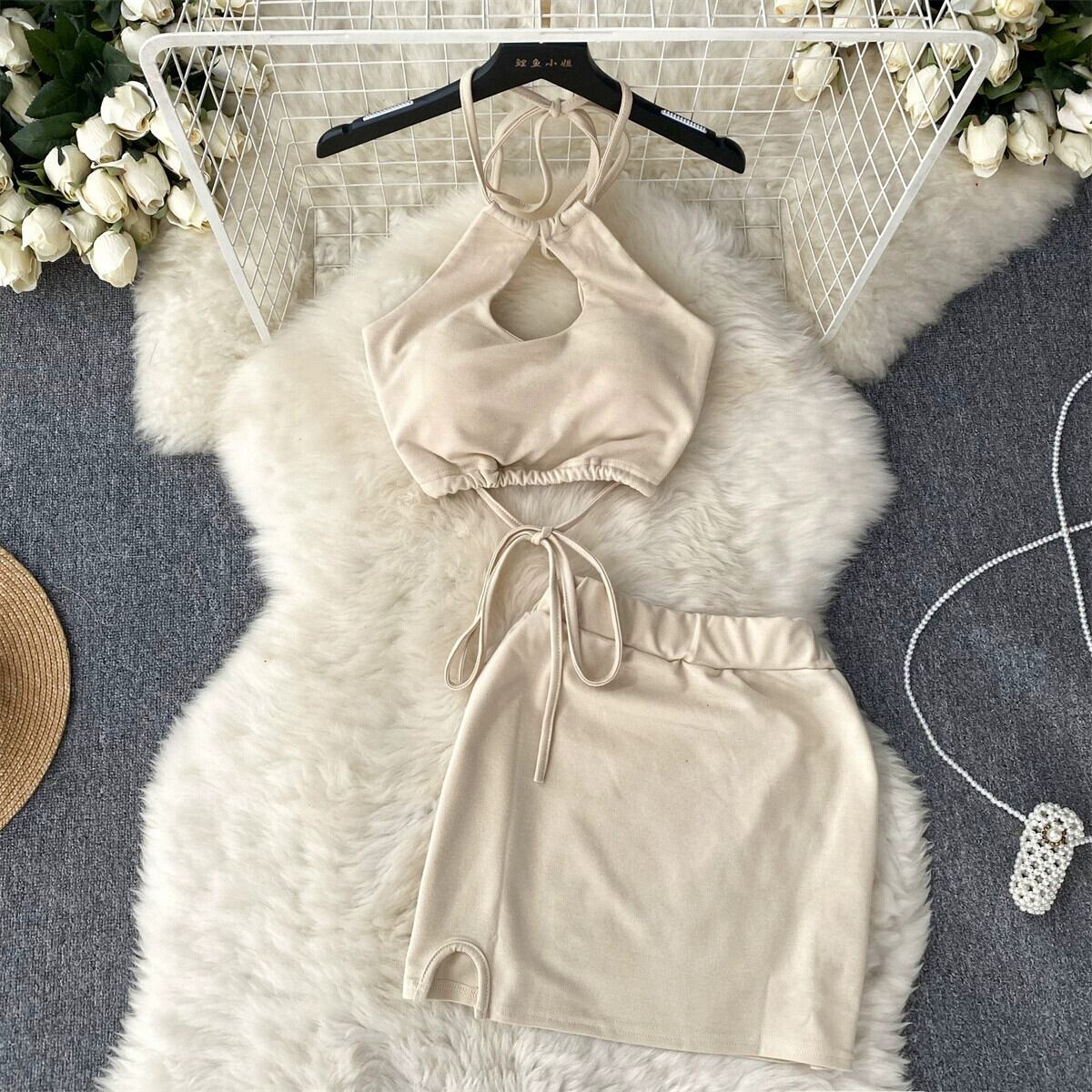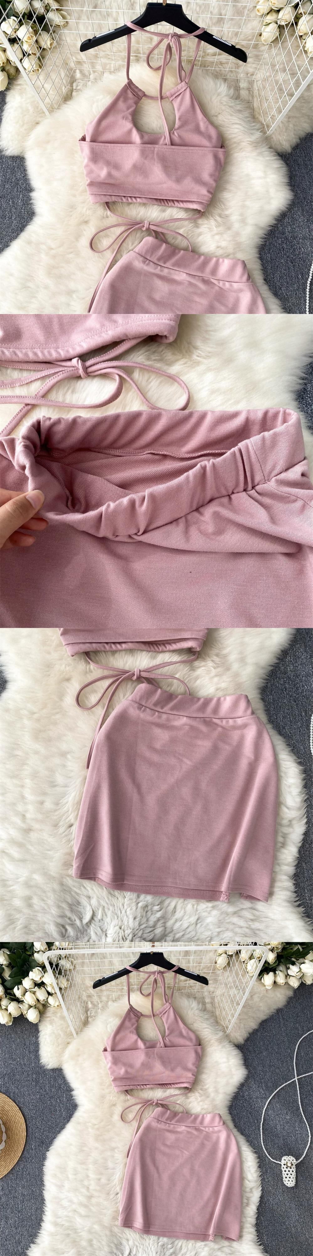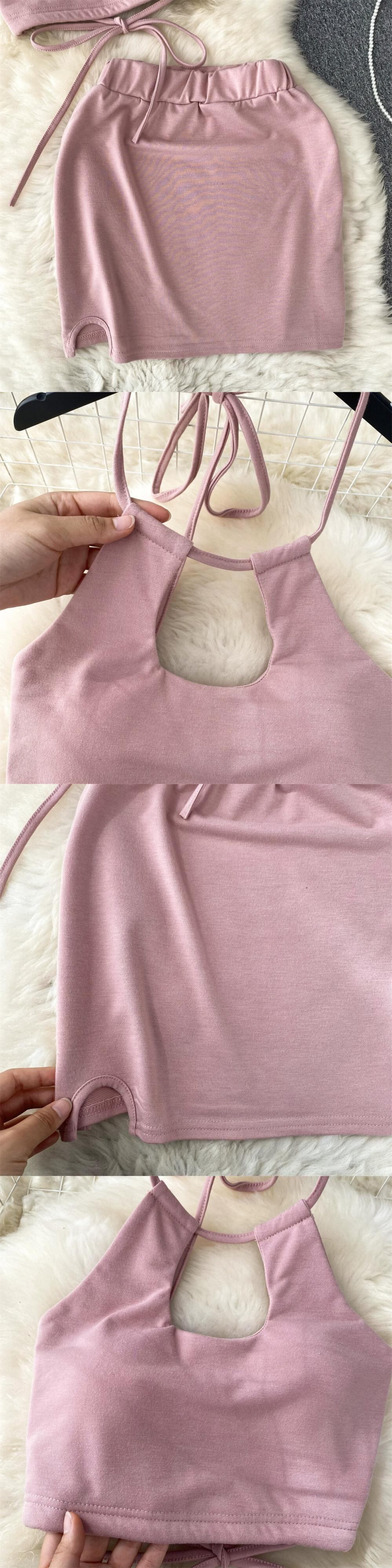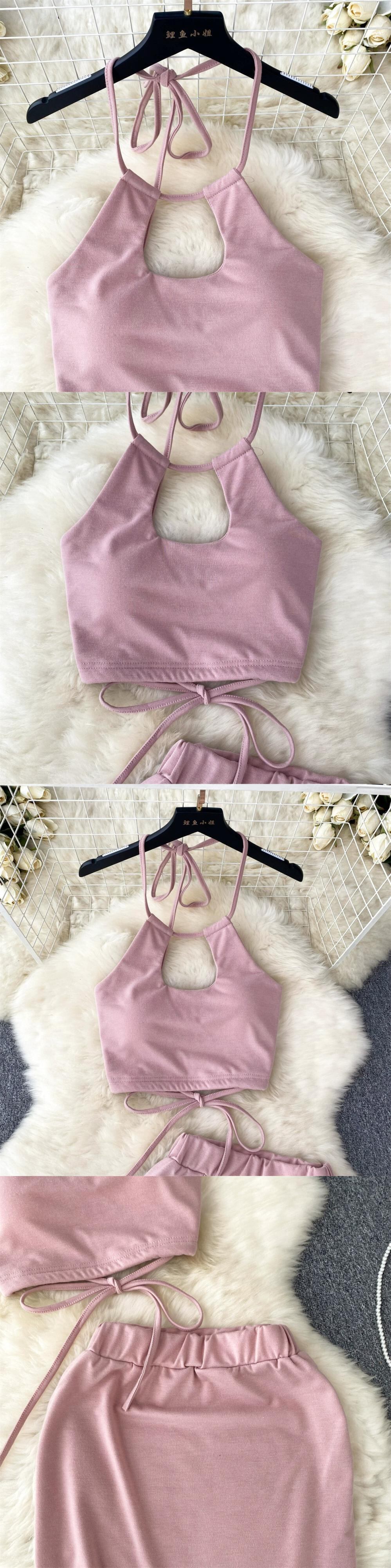 アメカジ スポーツ スーツ レディース 夏中空チューブトップ 吊りネック キャミソール バッグ ヒップ ハイウエスト スカート 2点セット ハイウェスト カジュアル サマー 夏物 lyxaj92114751060