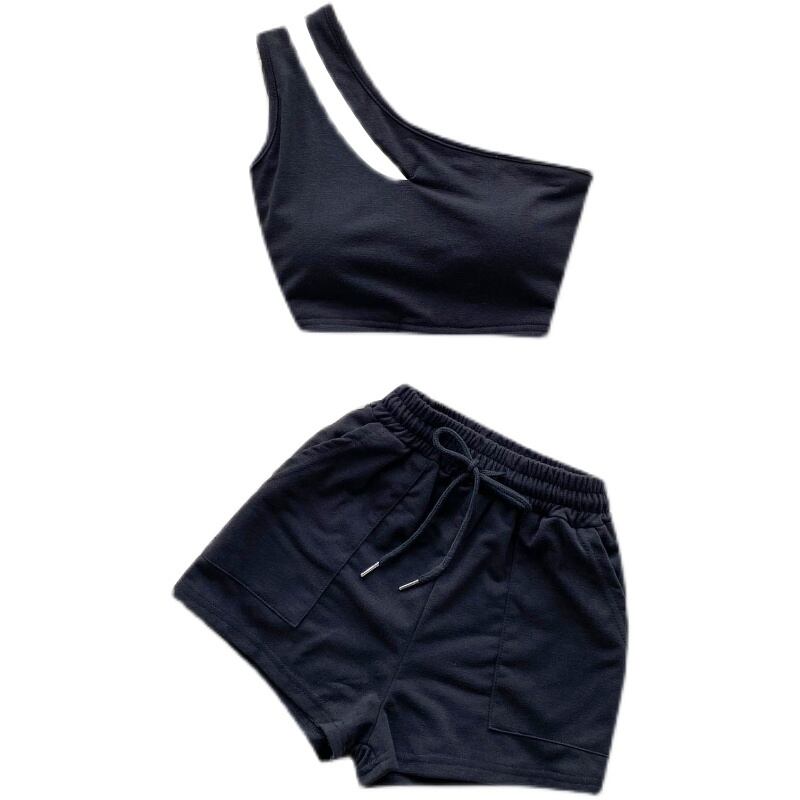 アメリカカジュアルスポーツスーツ女性ニッチデザインなで肩ショートベストトップ巾着ハイウエストサマーショーツ ハイウェスト 夏物 ブルマー lyxaj43502041306