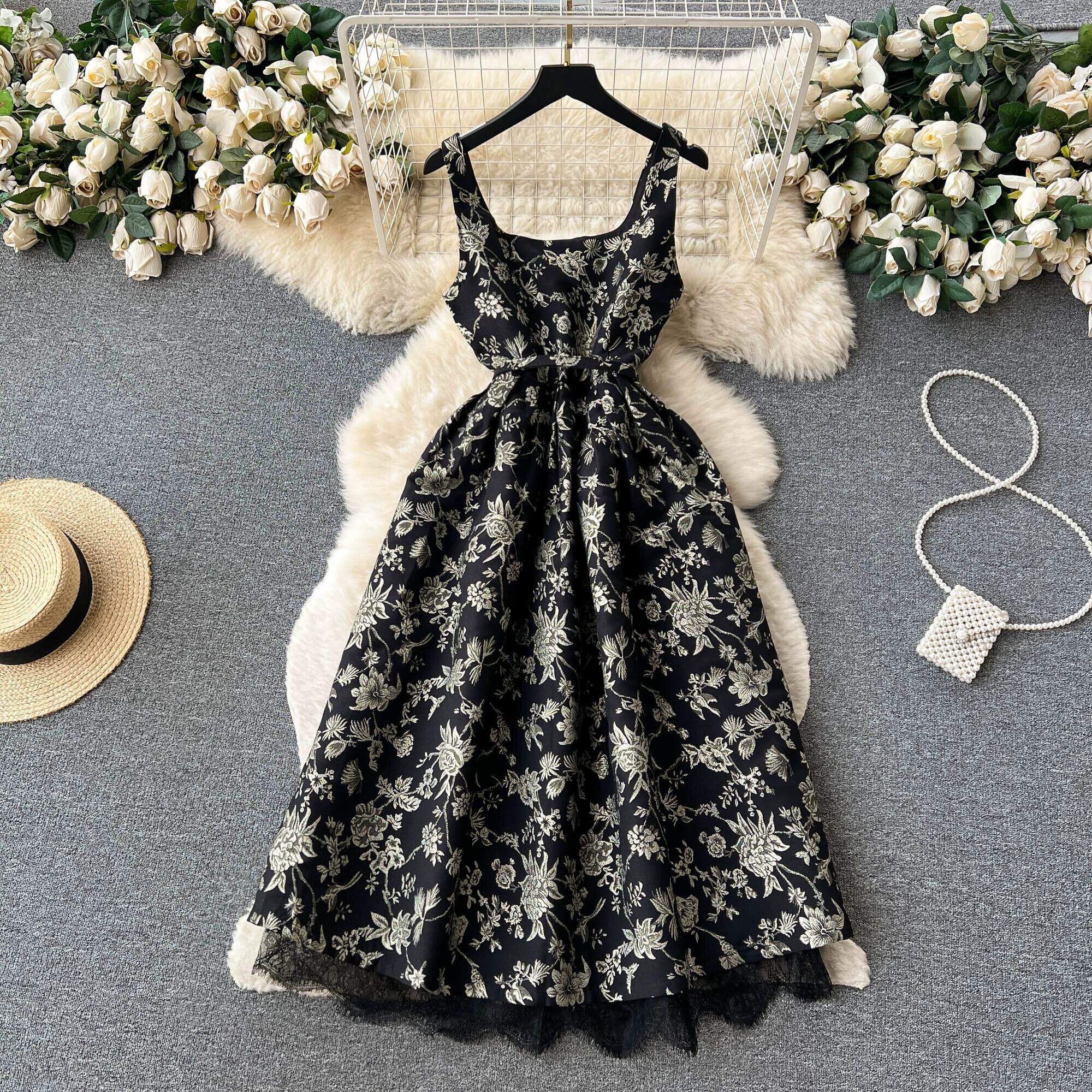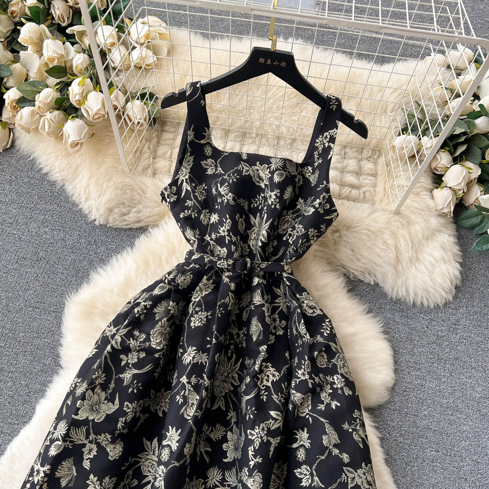 フレンチニッチハイエンド花柄スリングドレス女性の夏の新しい気質ウエストスリムバックレスフェアリースカート サマー 夏物 lyxaj70205716177