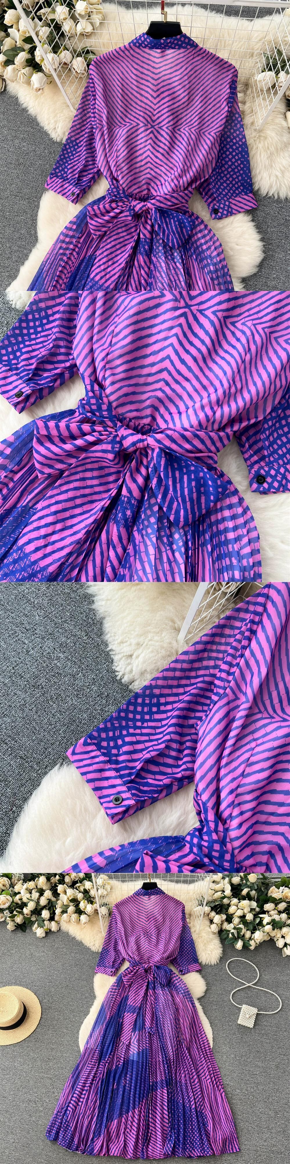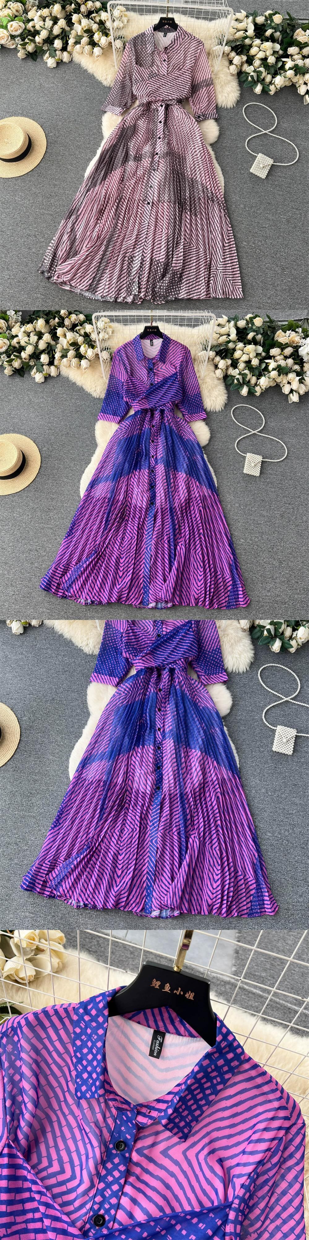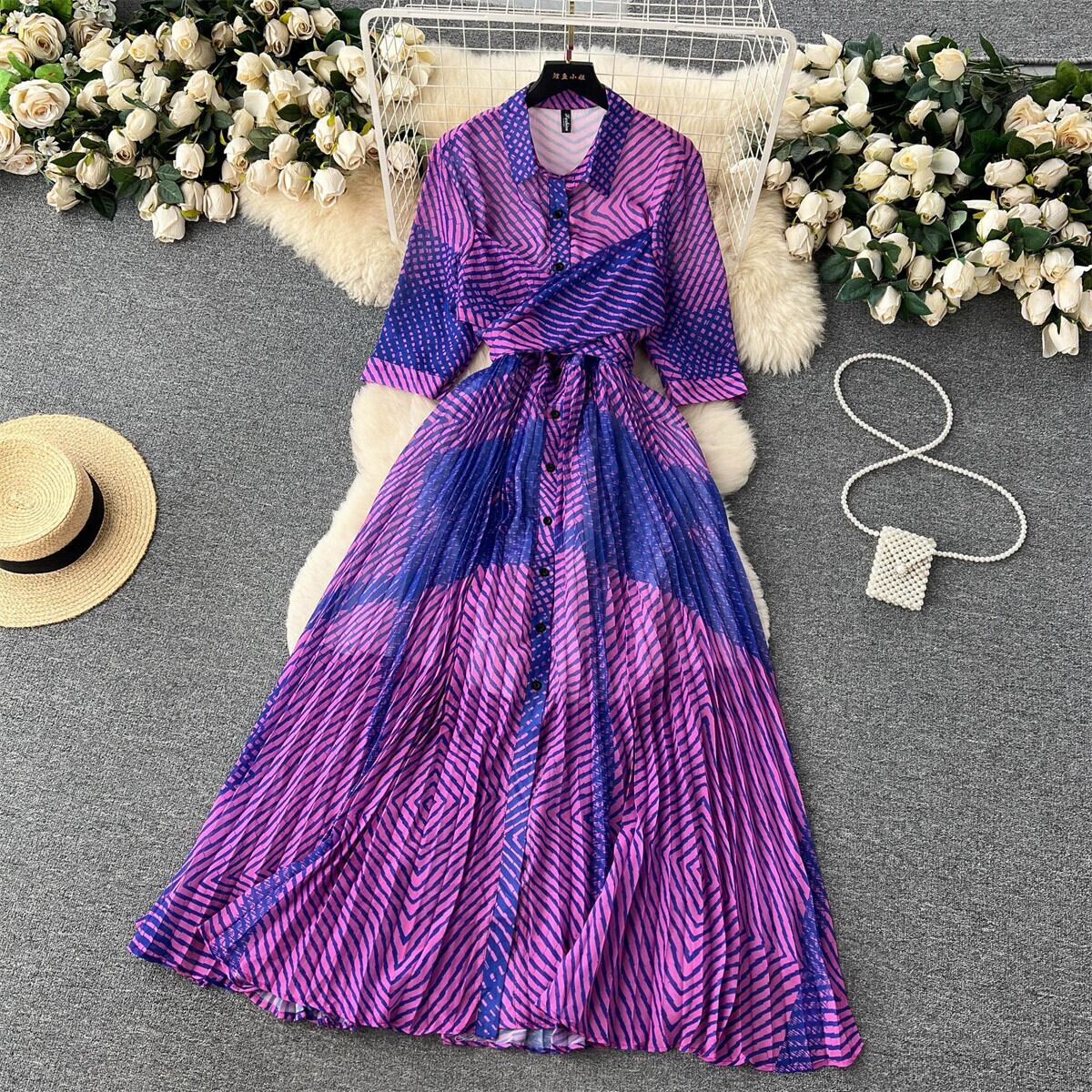 フレンチスタイルのハイエンド5分袖プリントカラーブロッキングシャツドレス女性ニッチウエスト痩身気質プリーツロングスカート lyxaj31044167595