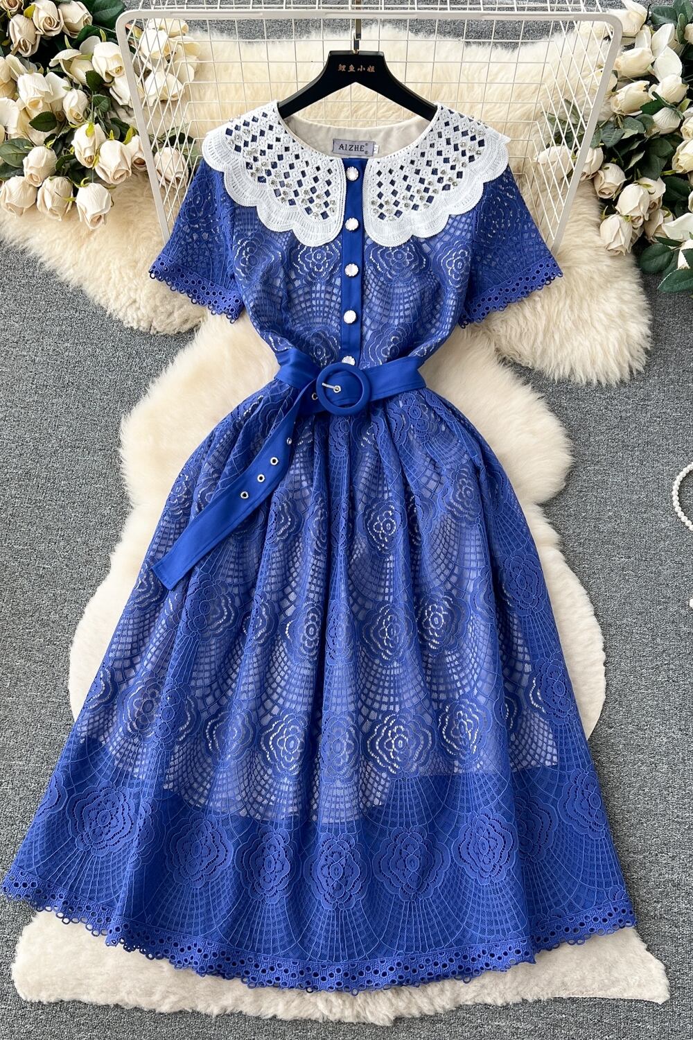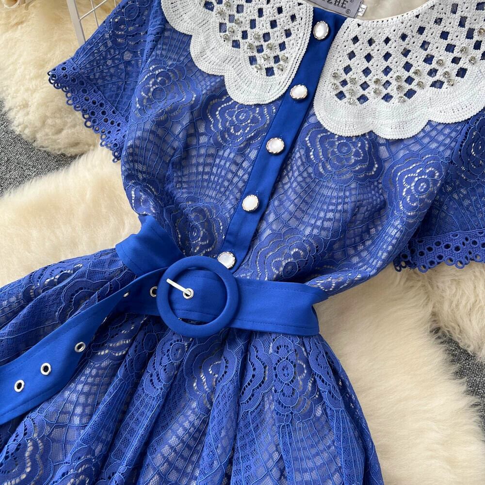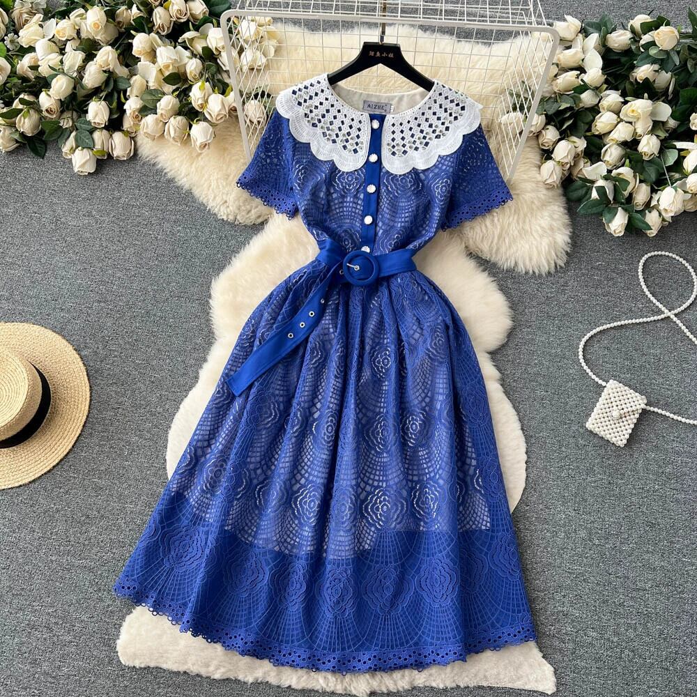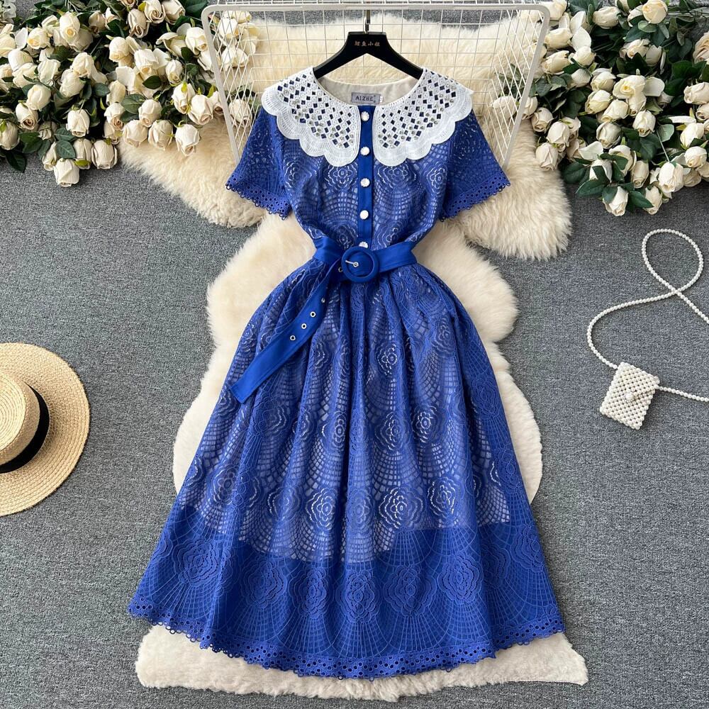 フランスの気質レーススプライシング人形襟ドレス女性の夏のウエスト痩身ハイエンドエレガントな女性のドレス サマー 夏物 lyxaj51822412882