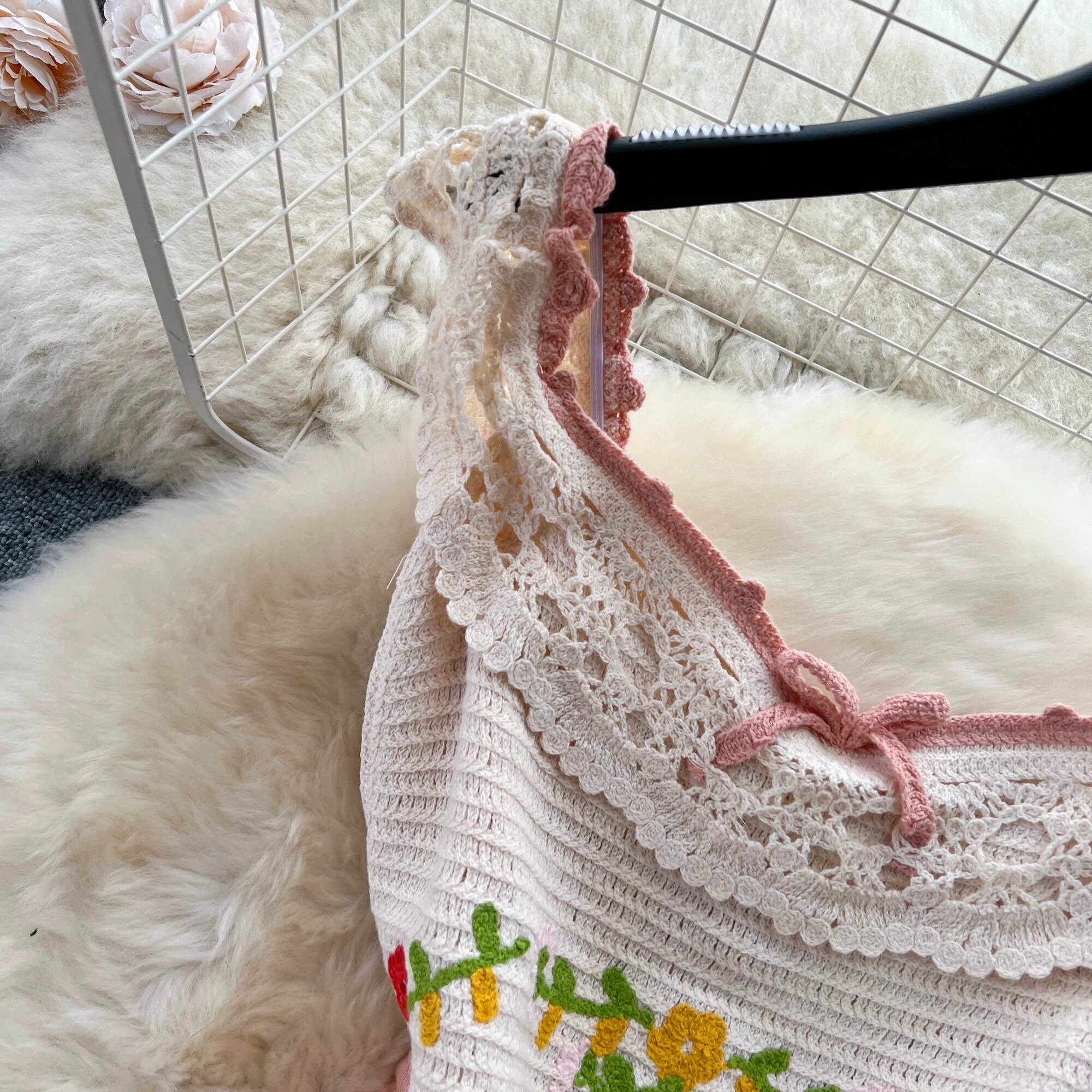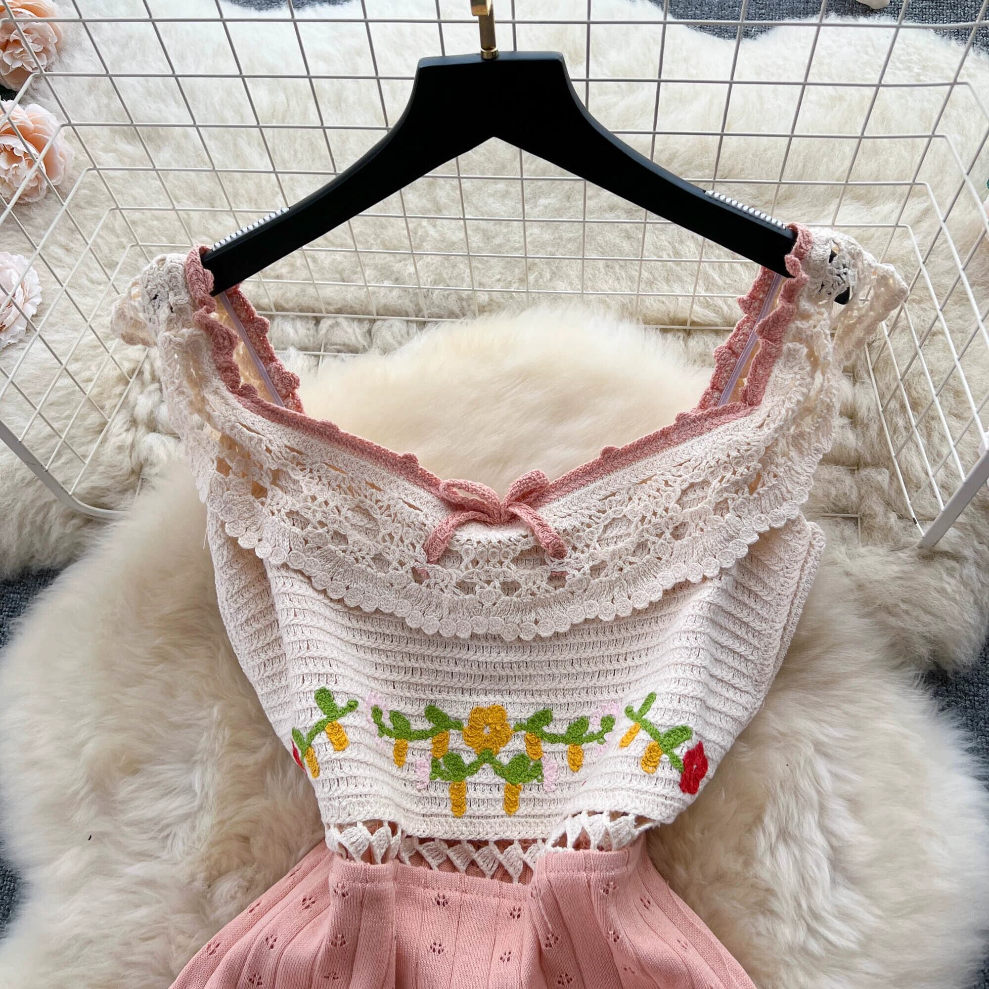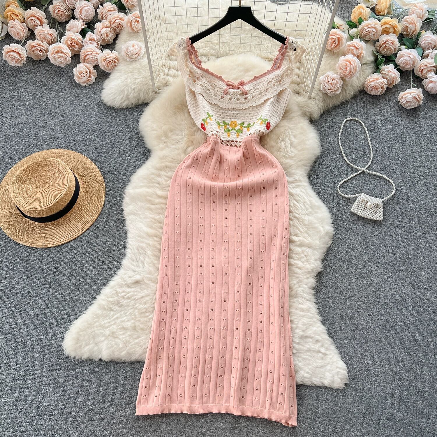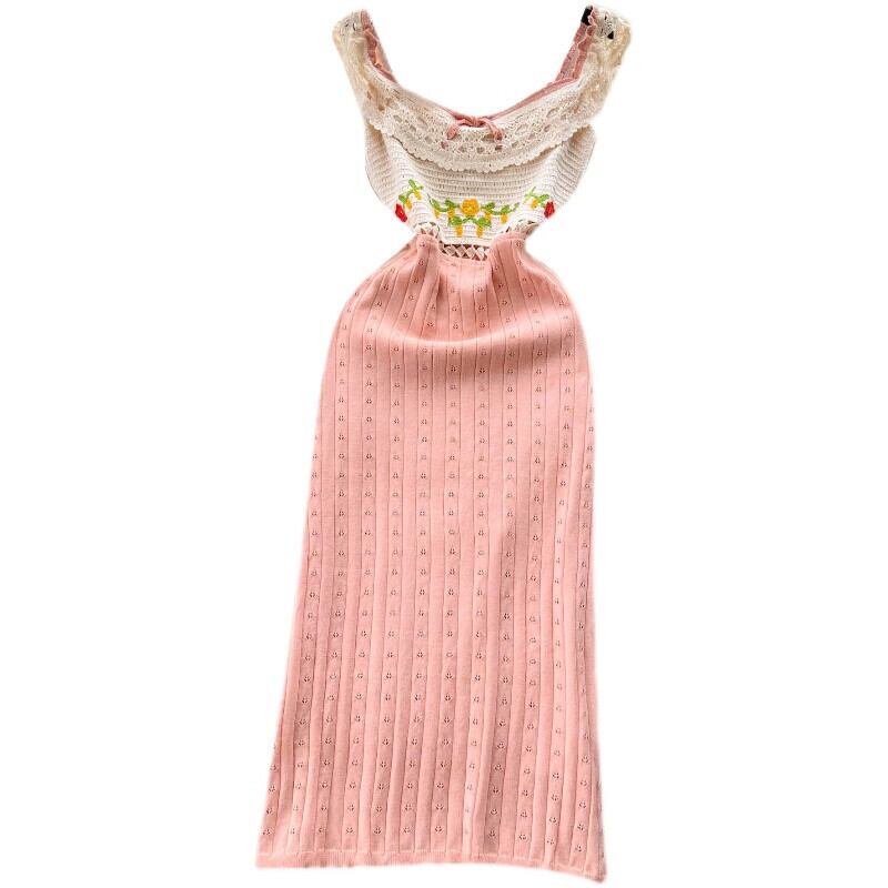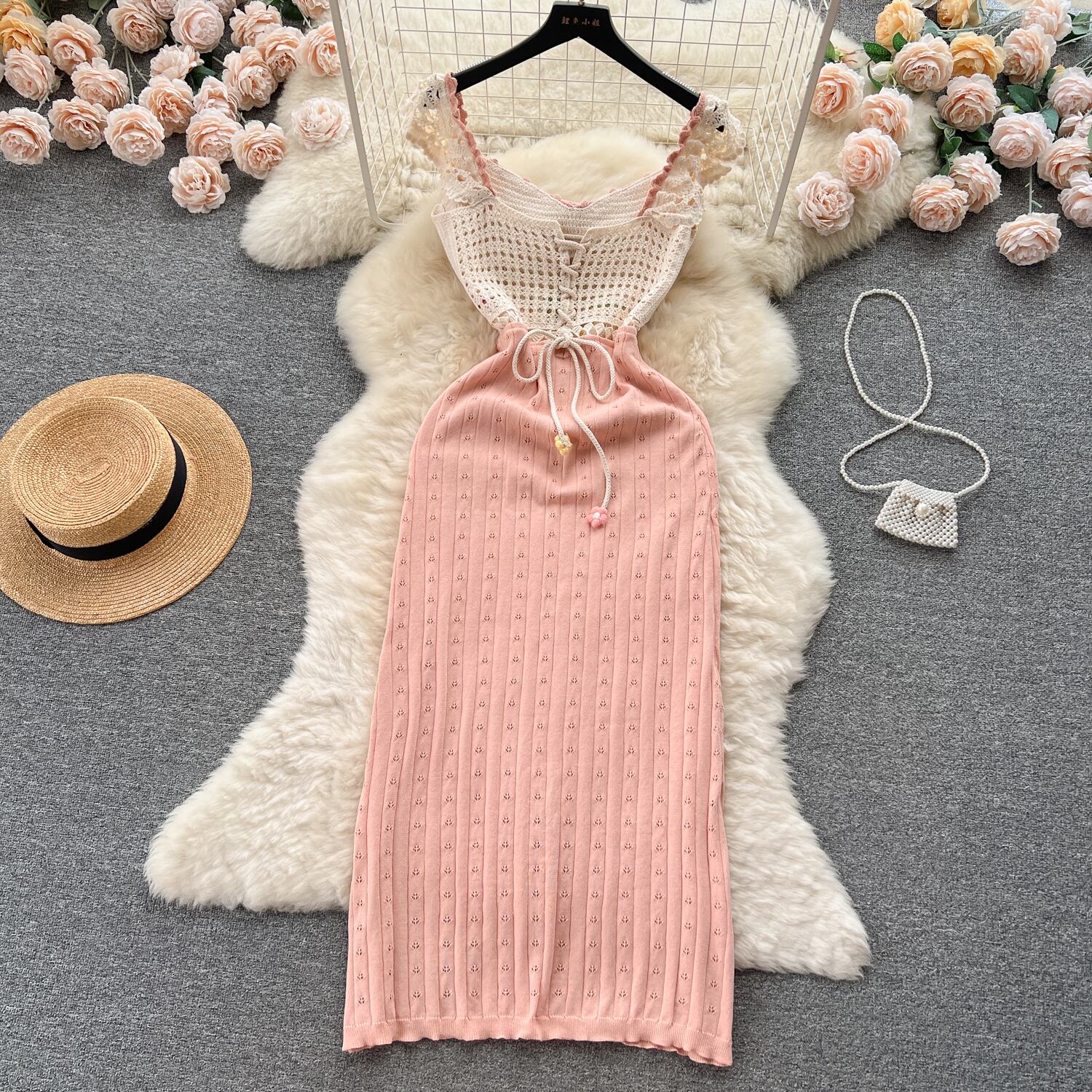 夏の新しいセクシーな純粋な欲望風ネクタイウエストスリム気質バッグヒップ中空フックフラワースプライシングニットドレス サマー 夏物 ピュア フラワーデザイン lyxaj89457426482