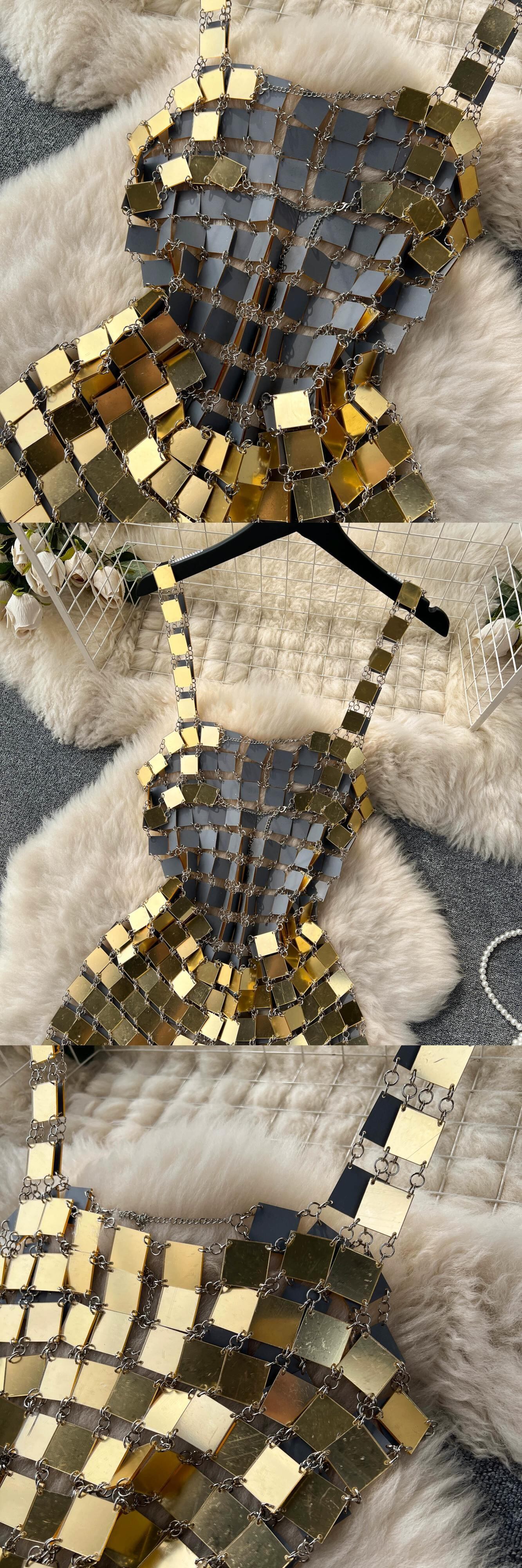セクシーな背中の開いたニッチデザインセンススパンコールステッチドレス女性の夏のウエストウエストサスペンダーシックな小さなスカート サマー 夏物 lyxaj69128998408