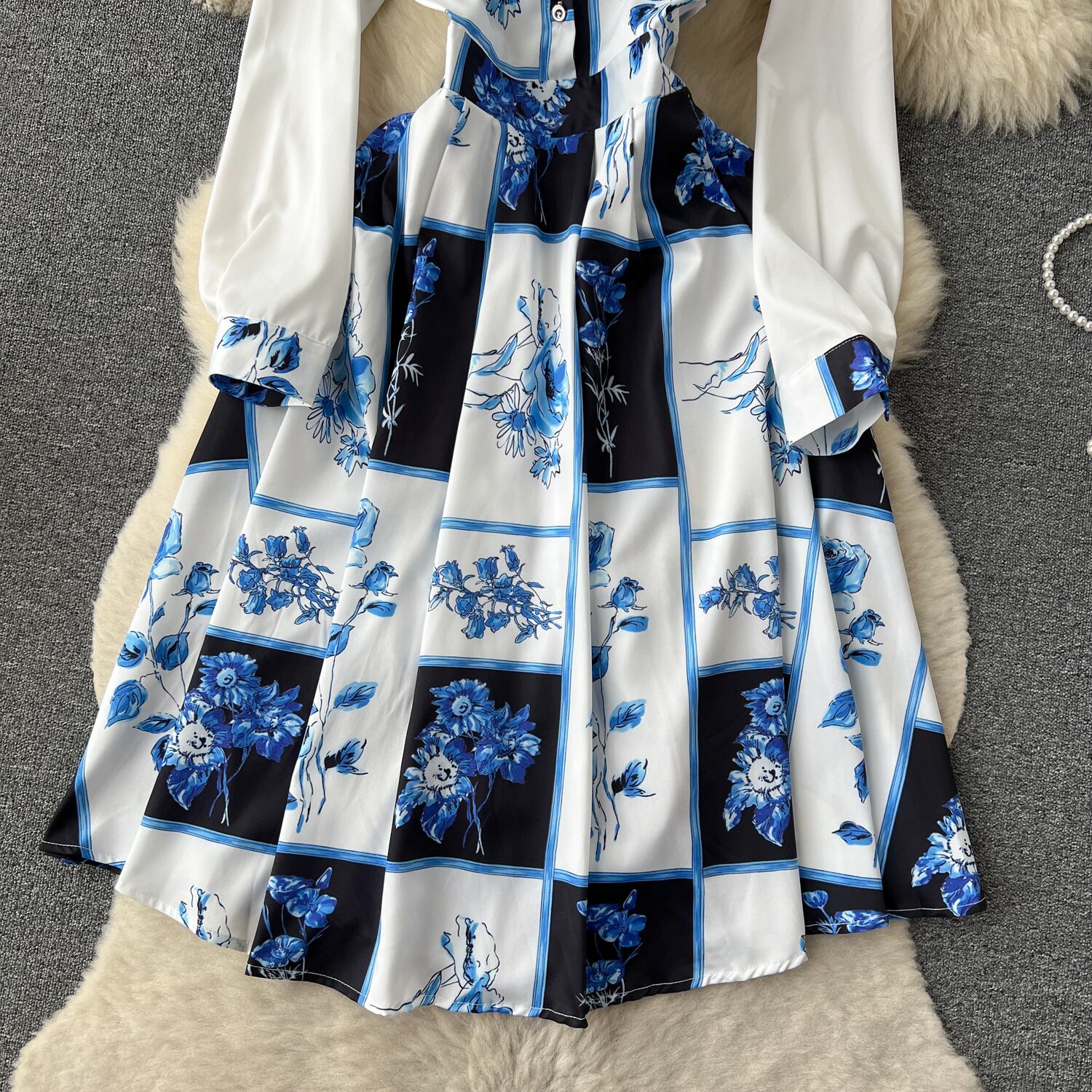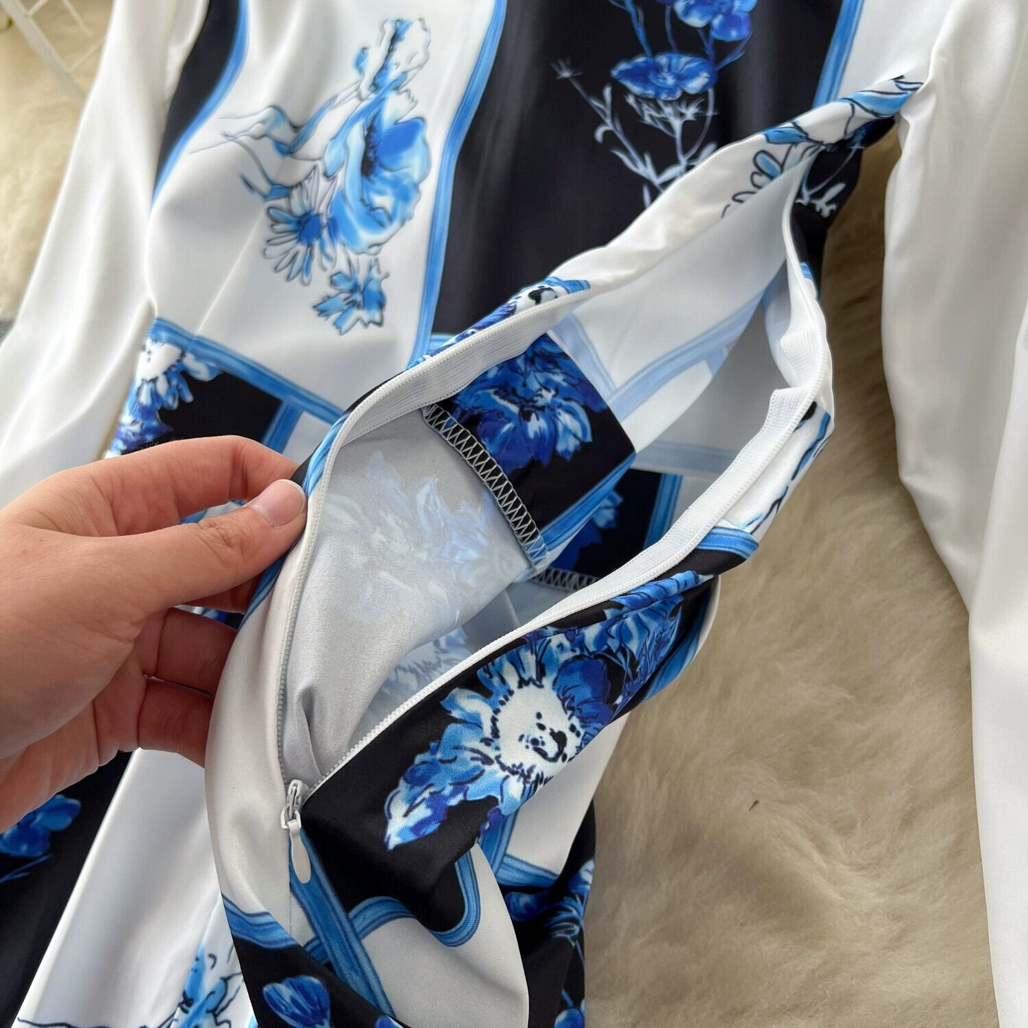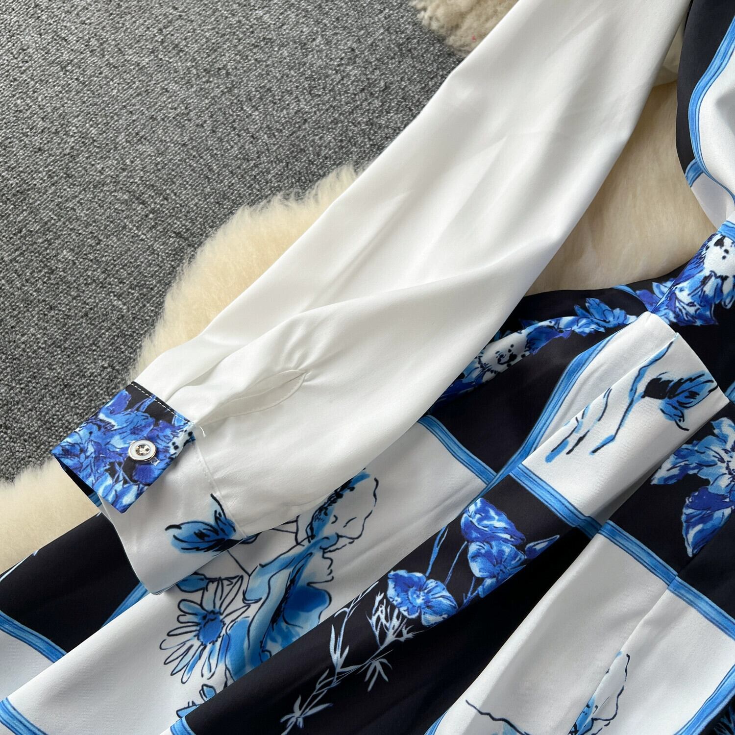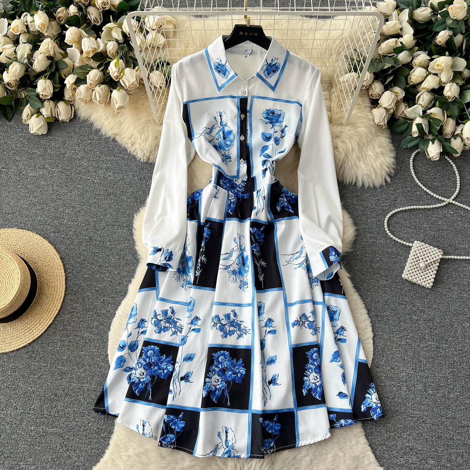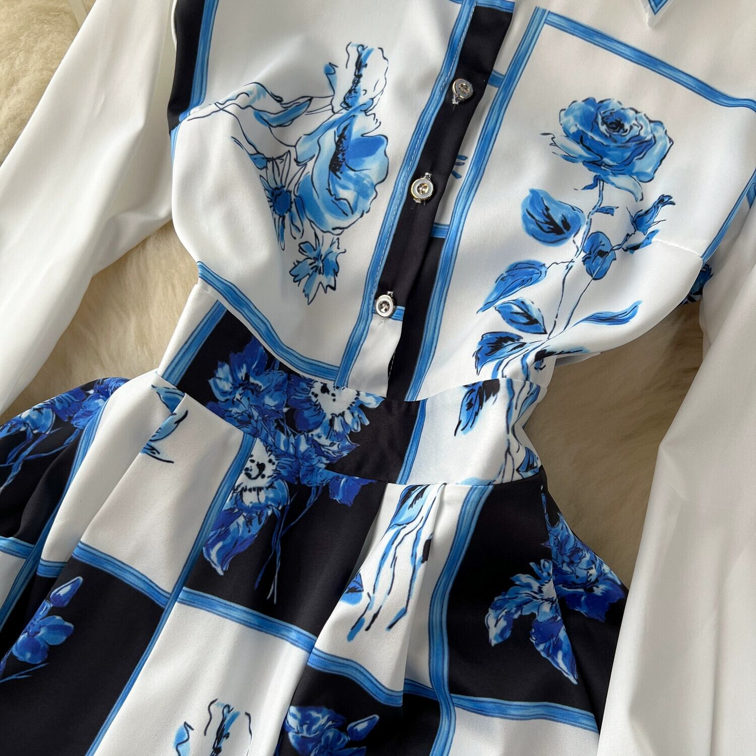 ライト高級ハイエンド花柄ドレスの女性の春と夏のポロカラー長袖ニッチシックなロイヤルシスター女神気質スカート ロング スプリング 春物 サマー 夏物 lyxaj34171181198