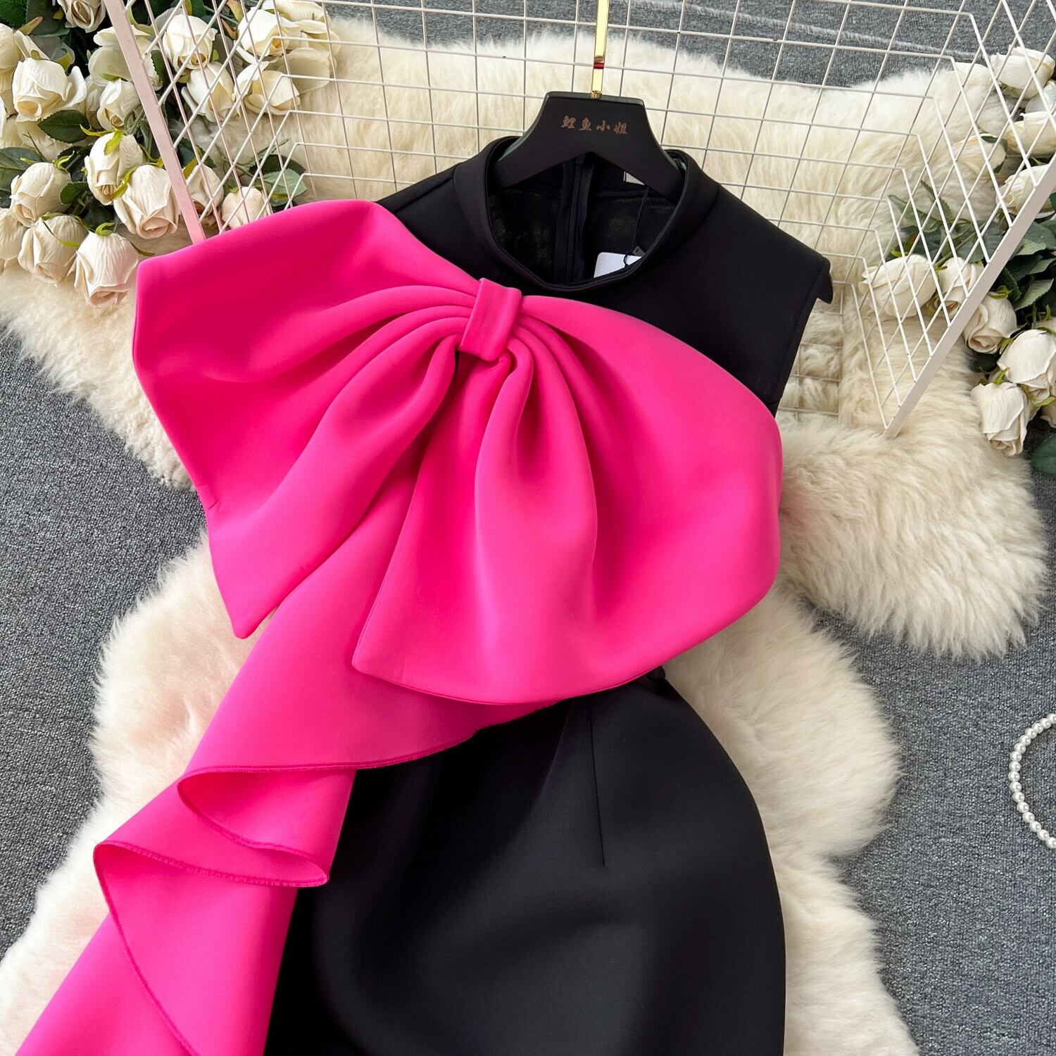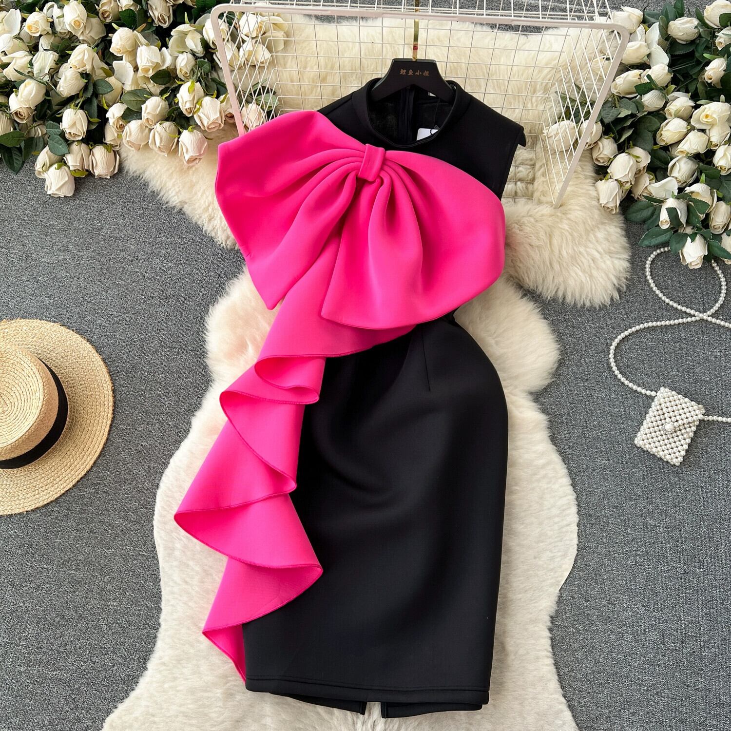 フレンチライトラグジュアリースタイルハイエンドちょう結びカラーノースリーブベストドレススカート女性ウエストスリットバッグヒップドレス リボン lyxaj84220263554