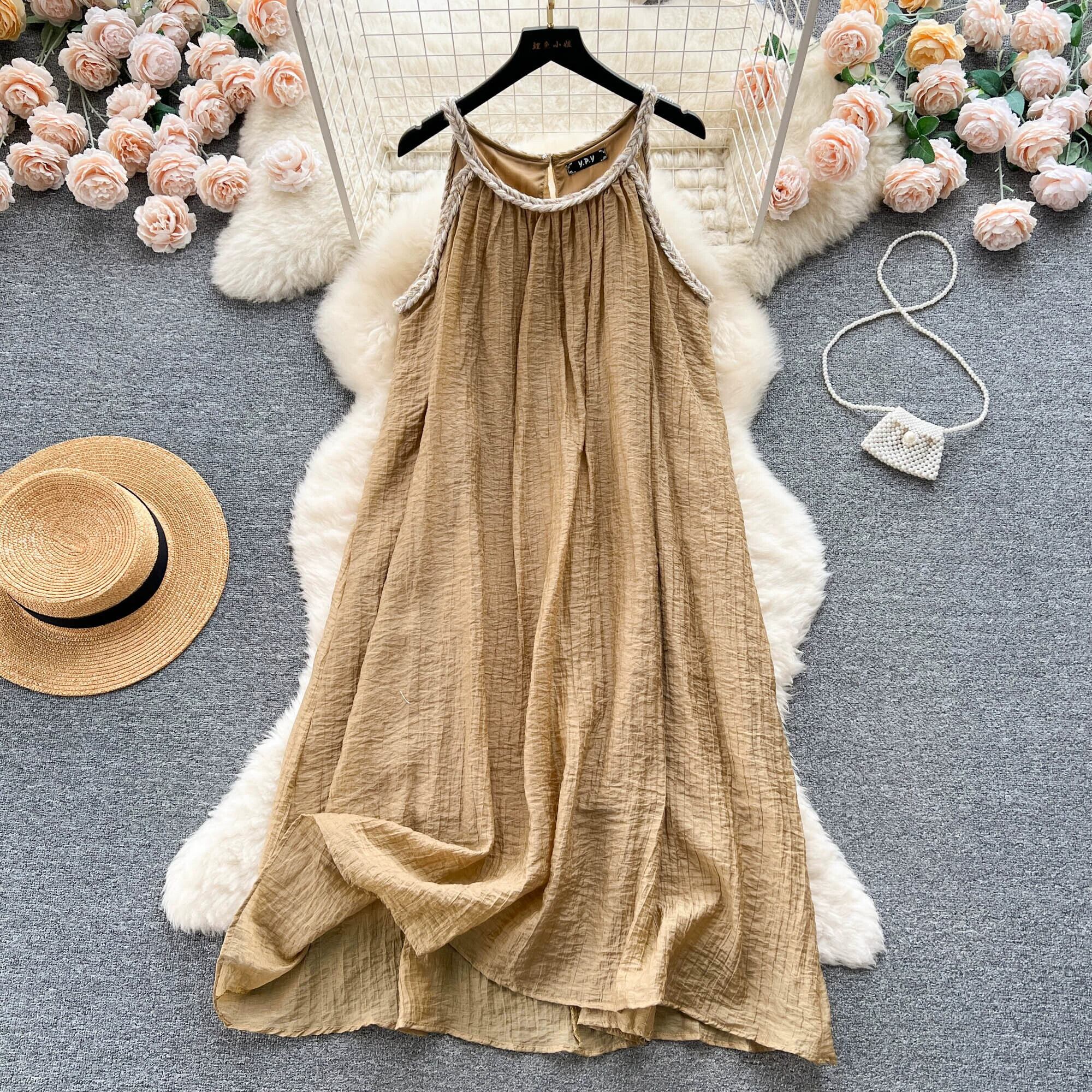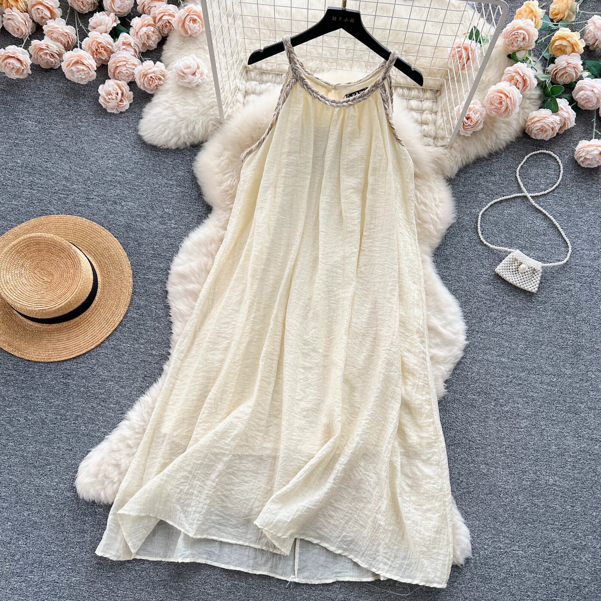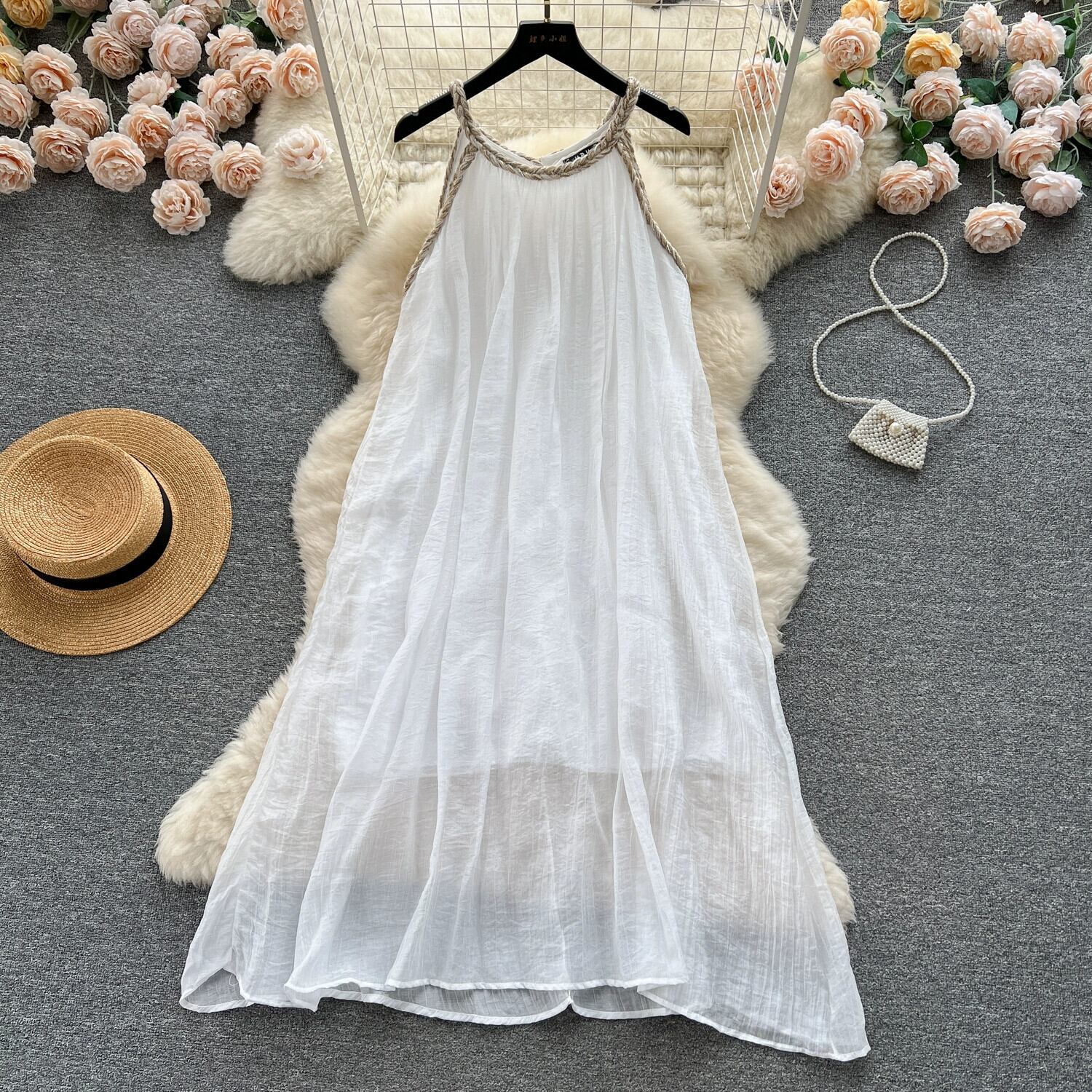 旅行海辺の休暇スタイルのサスペンダードレス女性の夏の新しい緩くて薄い気質スーパーフェアリー A ラインビーチスカート サマー 夏物 Aライン lyxaj51938792046
