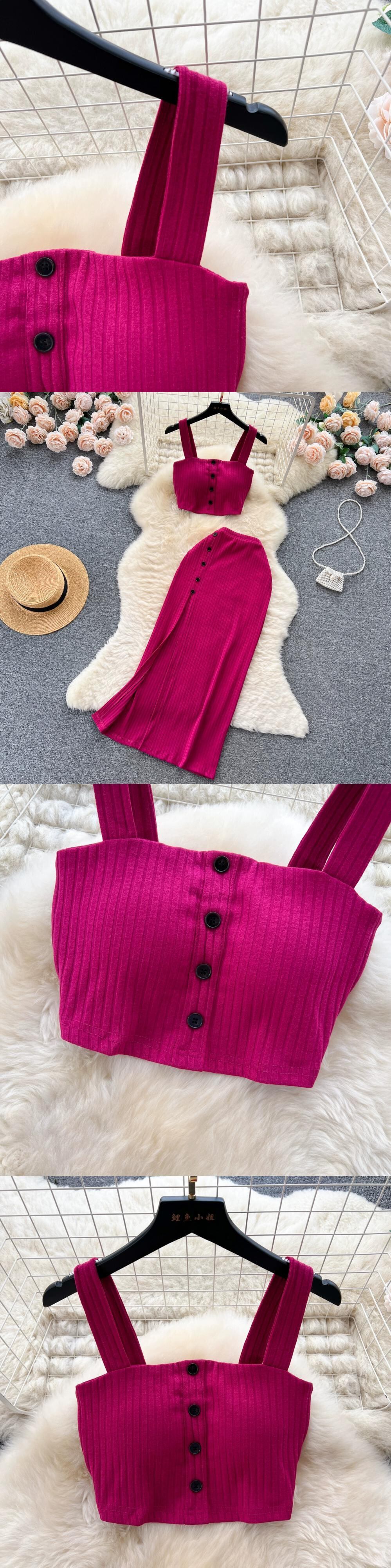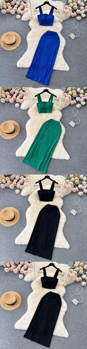 アメリカンスタイルニッチピュアディザイアスーツレディース夏フレンチショートチューブトップキャミソールハイウエスト着痩せスリットスカート ハイウェスト サマー 夏物 lyxaj38677737440