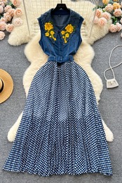 2023 夏の新フレンチスタイルニッチハイエンドウェーブポイントステッチデニムノースリーブウエスト痩身ドレス サマー 夏物 lyxaj71596544244