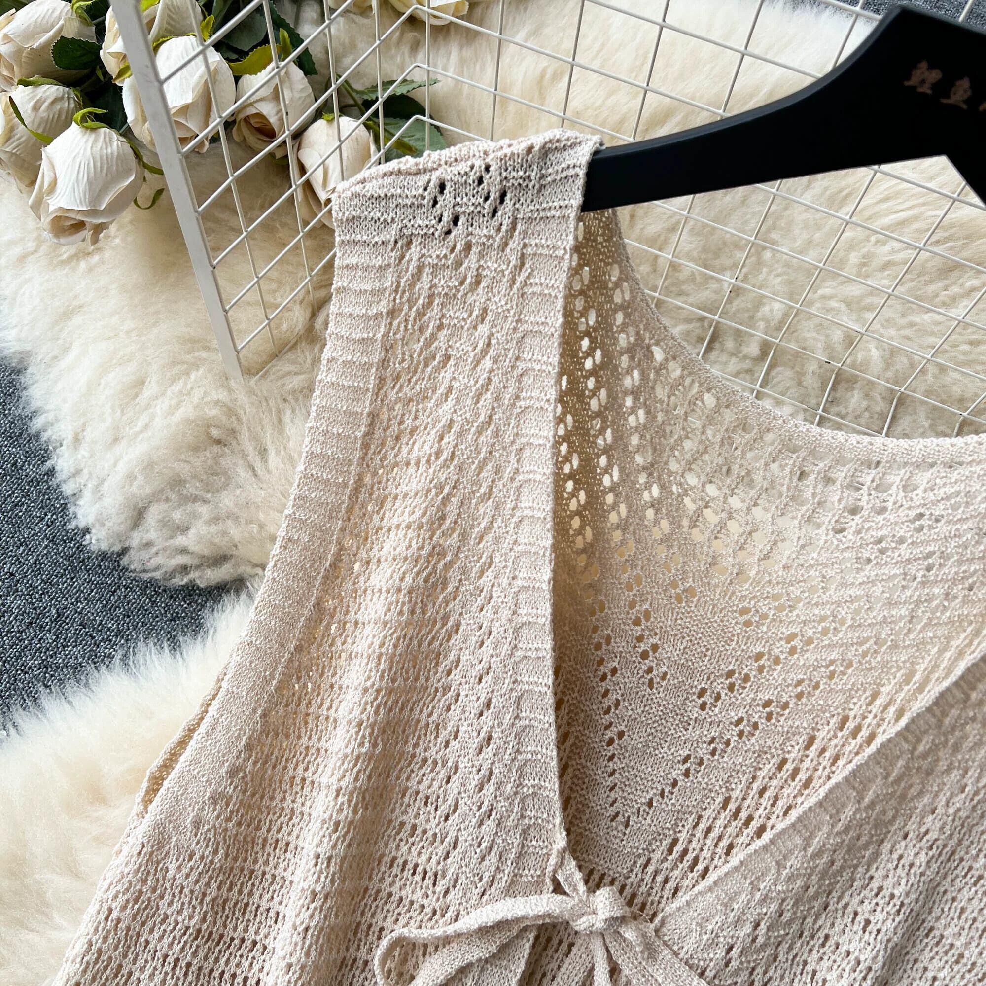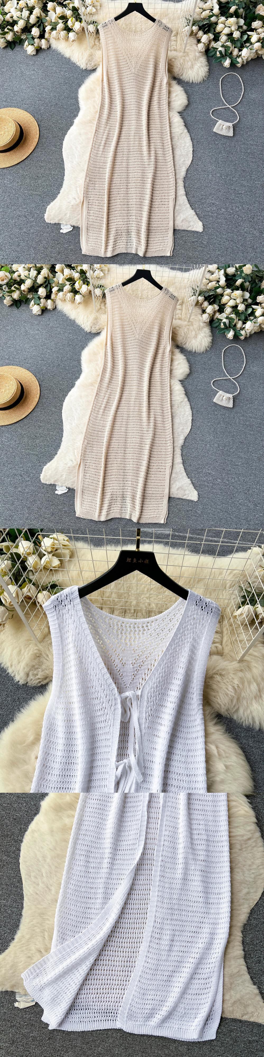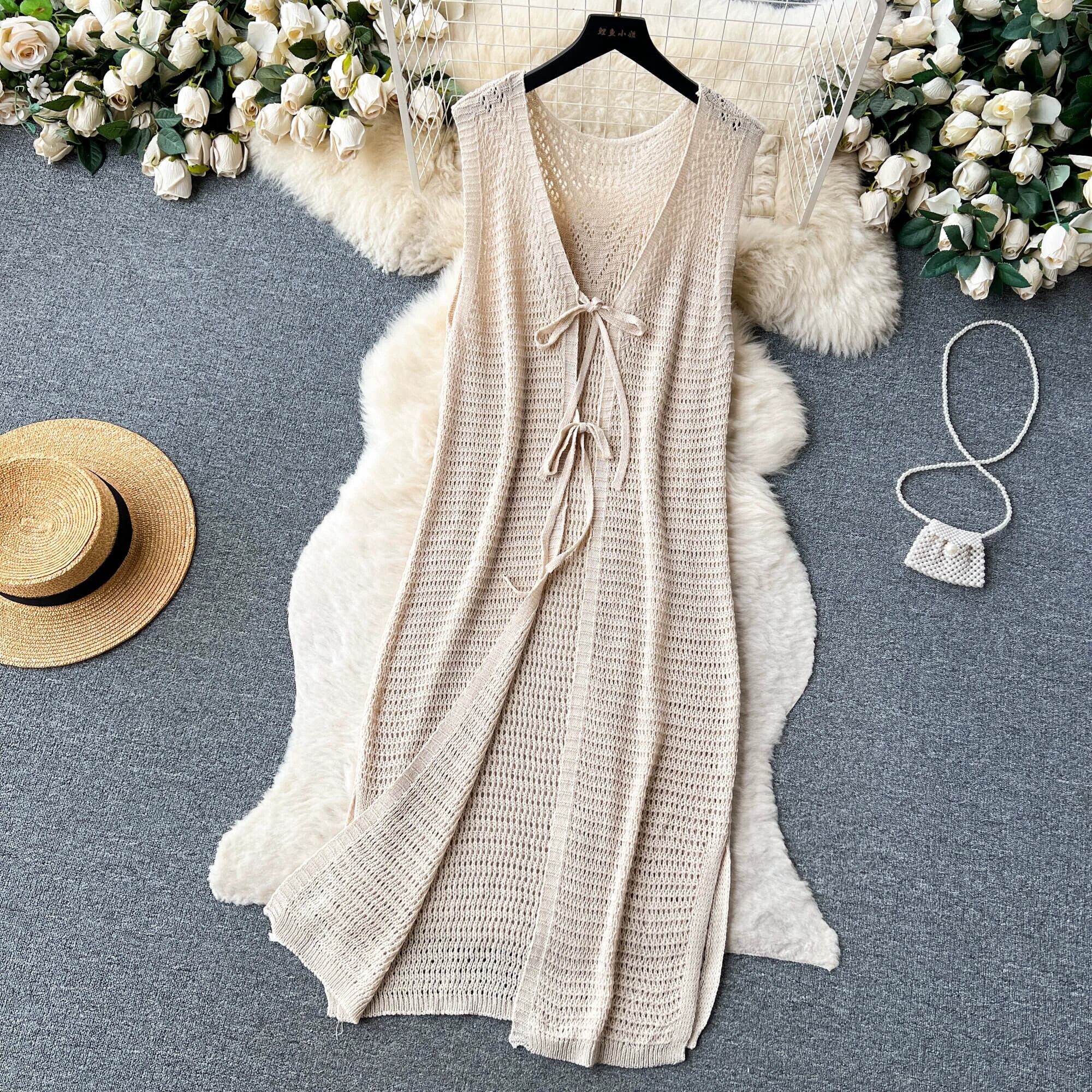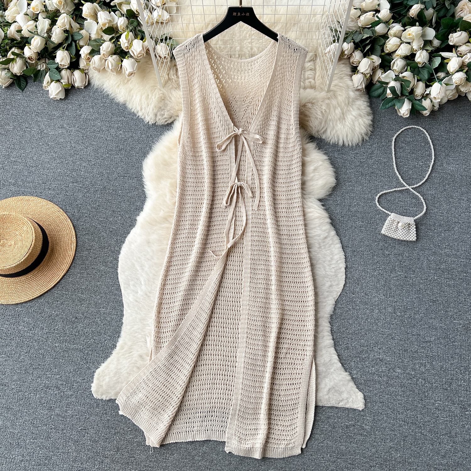 ニッチレトロ中空編みノースリーブショール女性の夏の新しいシックなデザインのミドル丈カーディガンドレス サマー 夏物 lyxaj92962604824