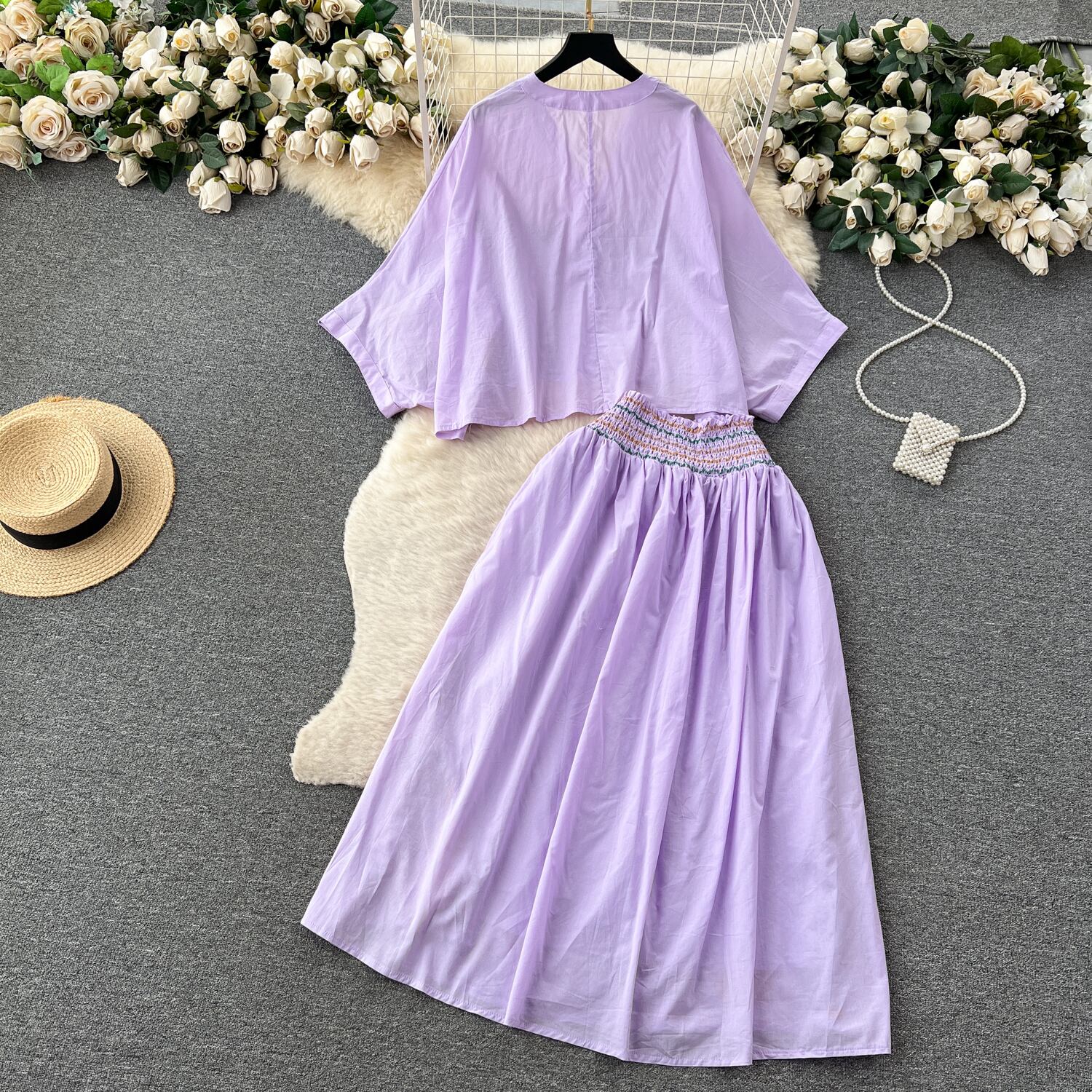 中国風のレトロな国潮ファッションスーツの女性の春と夏のルーズ刺繍シャツ+ハイウエストストラップスカート ハイウェスト レッド スプリング 春物 サマー 夏物 lyxaj63575057710