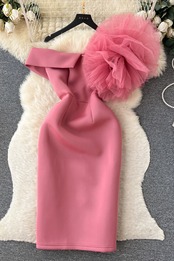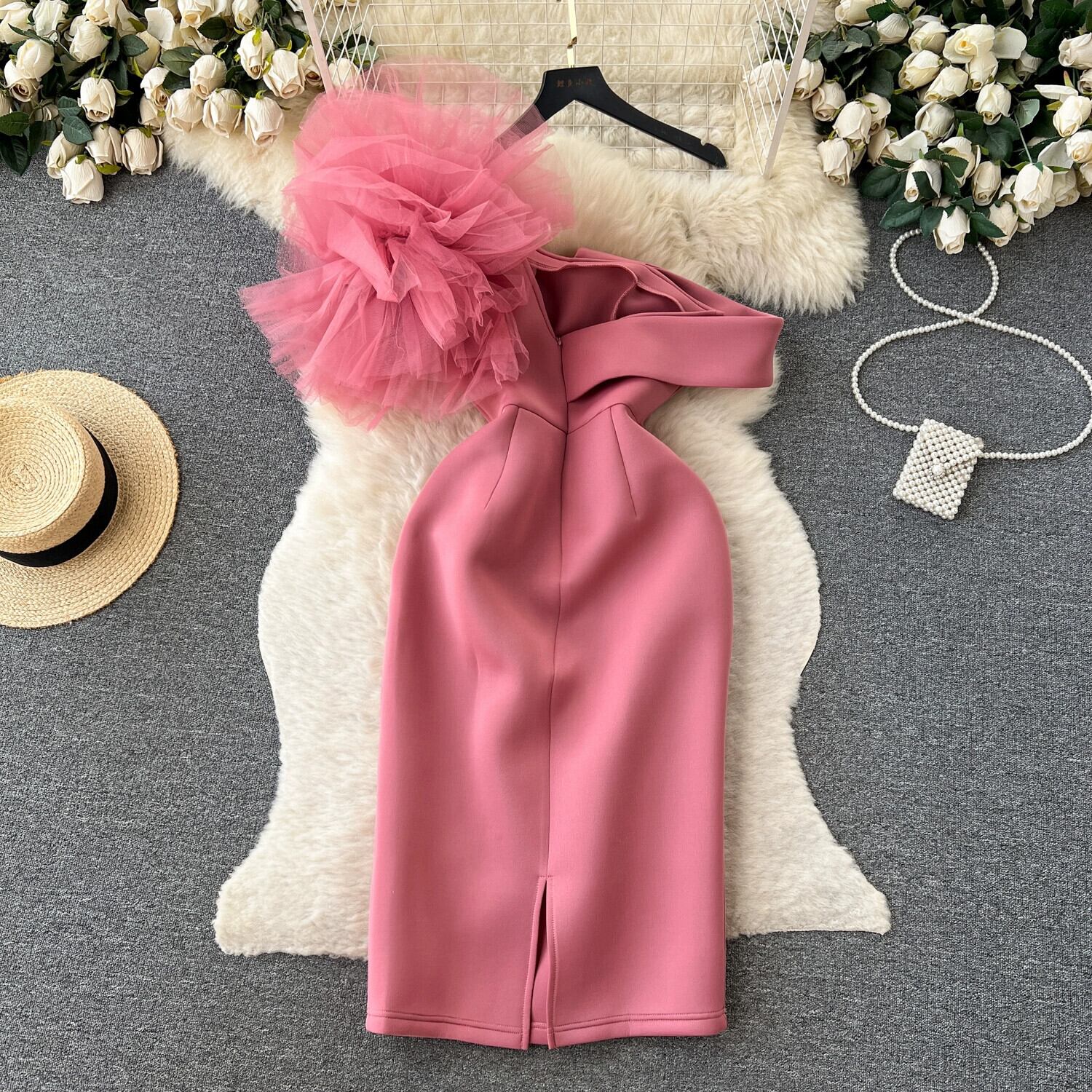 セクシーなセレブスタイルの宴会誕生日ドレス女性ニッチワンショルダー三次元フラワーウエスト痩身ヒップハグドレス フラワーデザイン lyxaj95715957753
