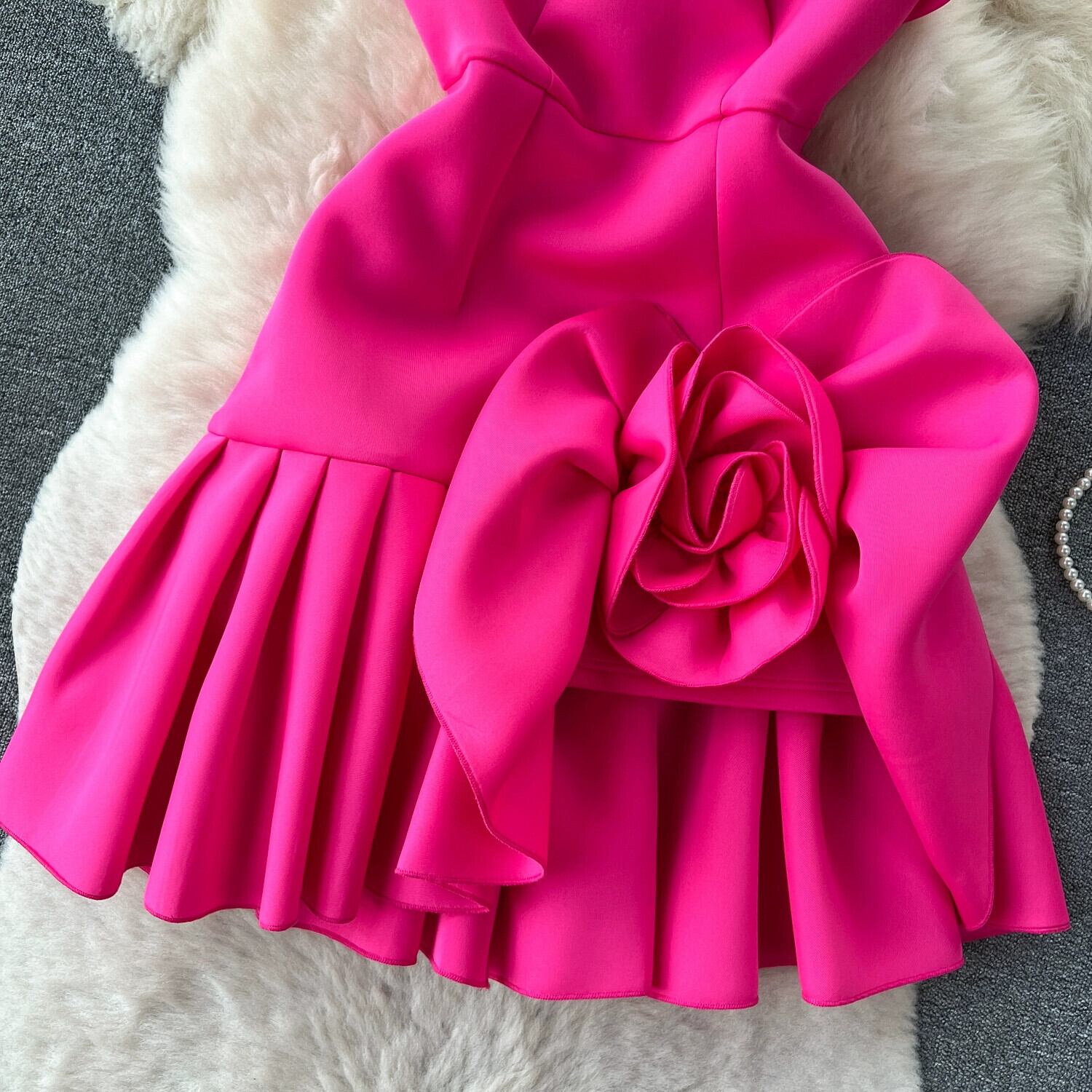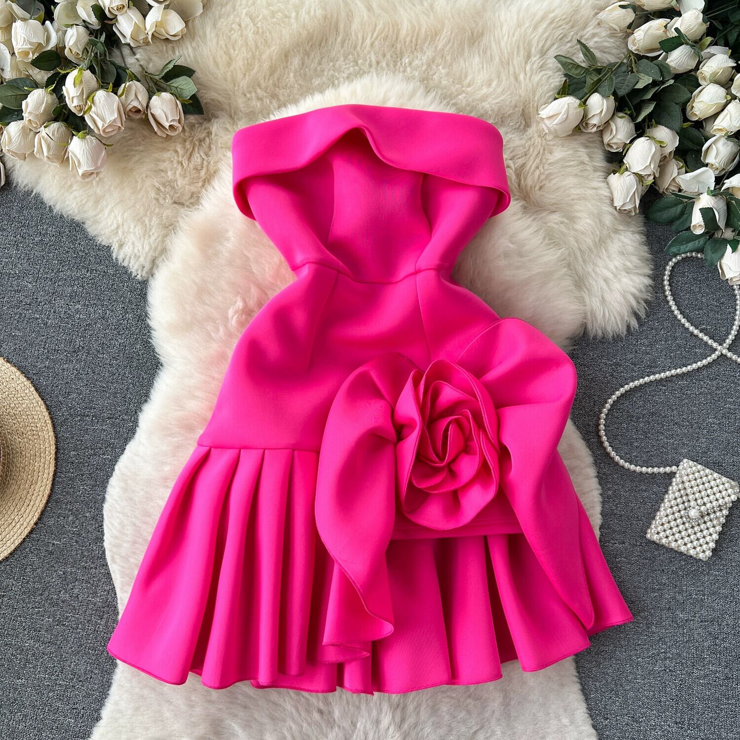 ニッチ純粋な欲望ハイエンドノースリーブチューブトップ誕生日パーティードレス女性立体フラワーウエストプリーツドレス ピュア フラワーデザイン lyxaj56155512445