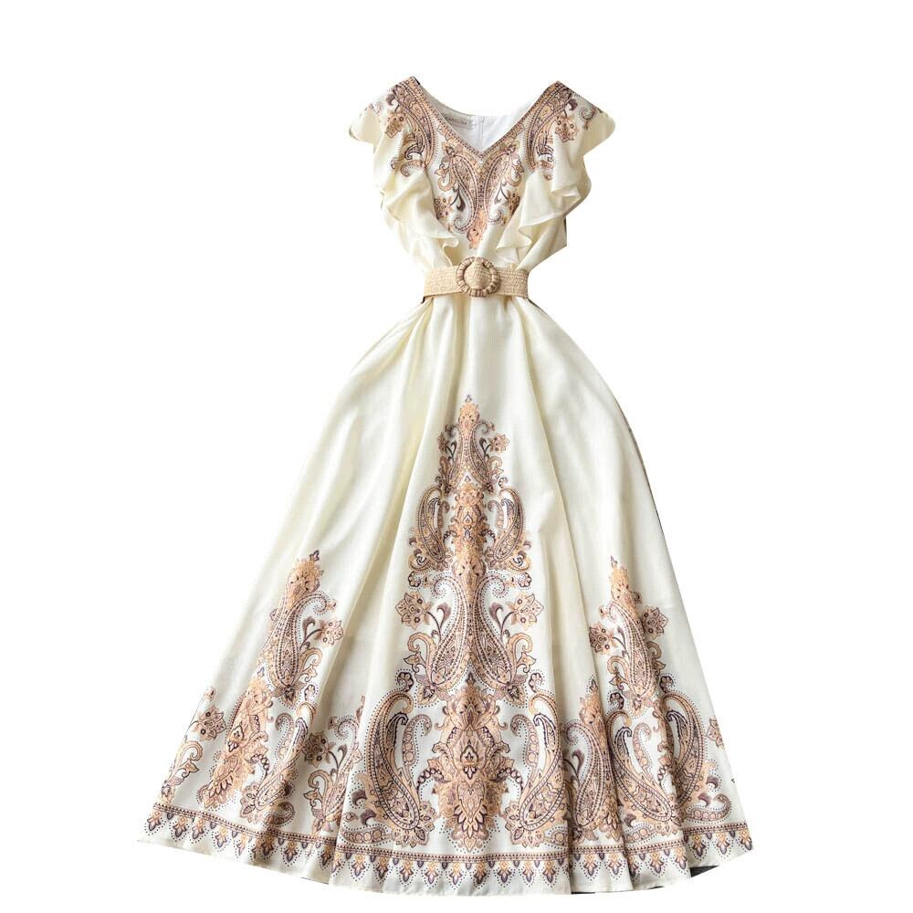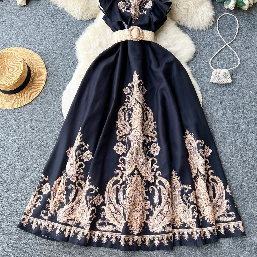 ヨーロッパとアメリカのレトロな宮殿スタイルのノースリーブ V ネックプリーツドレス女性の夏の新しいスタイルのプリントウエスト痩身大きな裾スカート レース サマー 夏物 Vネック ヨーロピアン lyxaj98783205833