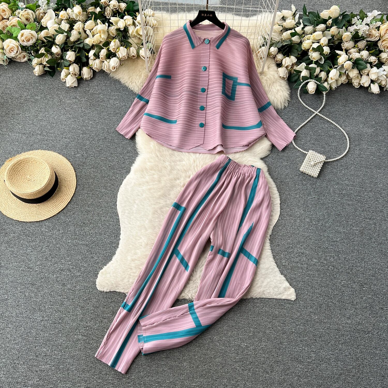 ヨーロッパとアメリカのスタイルのプリーツデザイン、軽くて豪華でハイエンドのスーツの女性、秋のルーズシャツ+ハイウエストドレープパンツ ハイウェスト オータム 秋物 ヨーロピアン lyxaj67075669943