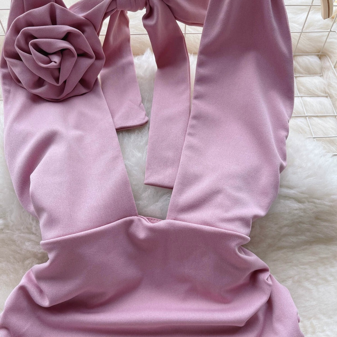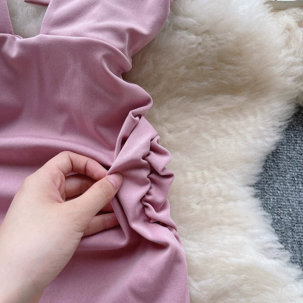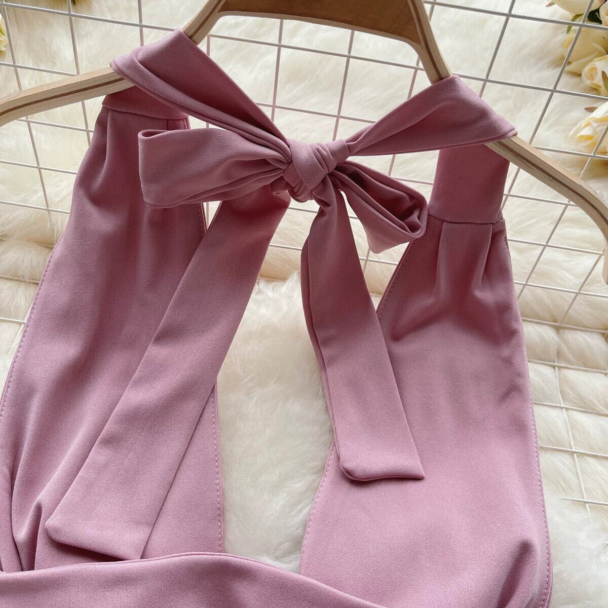 パーソナライズされたホットガールセクシーな中空バックレスレースアップドレス女性の夏のウエスト痩身プリーツ V ネックヒップカバースカート サマー 夏物 Vネック lyxaj55481535487