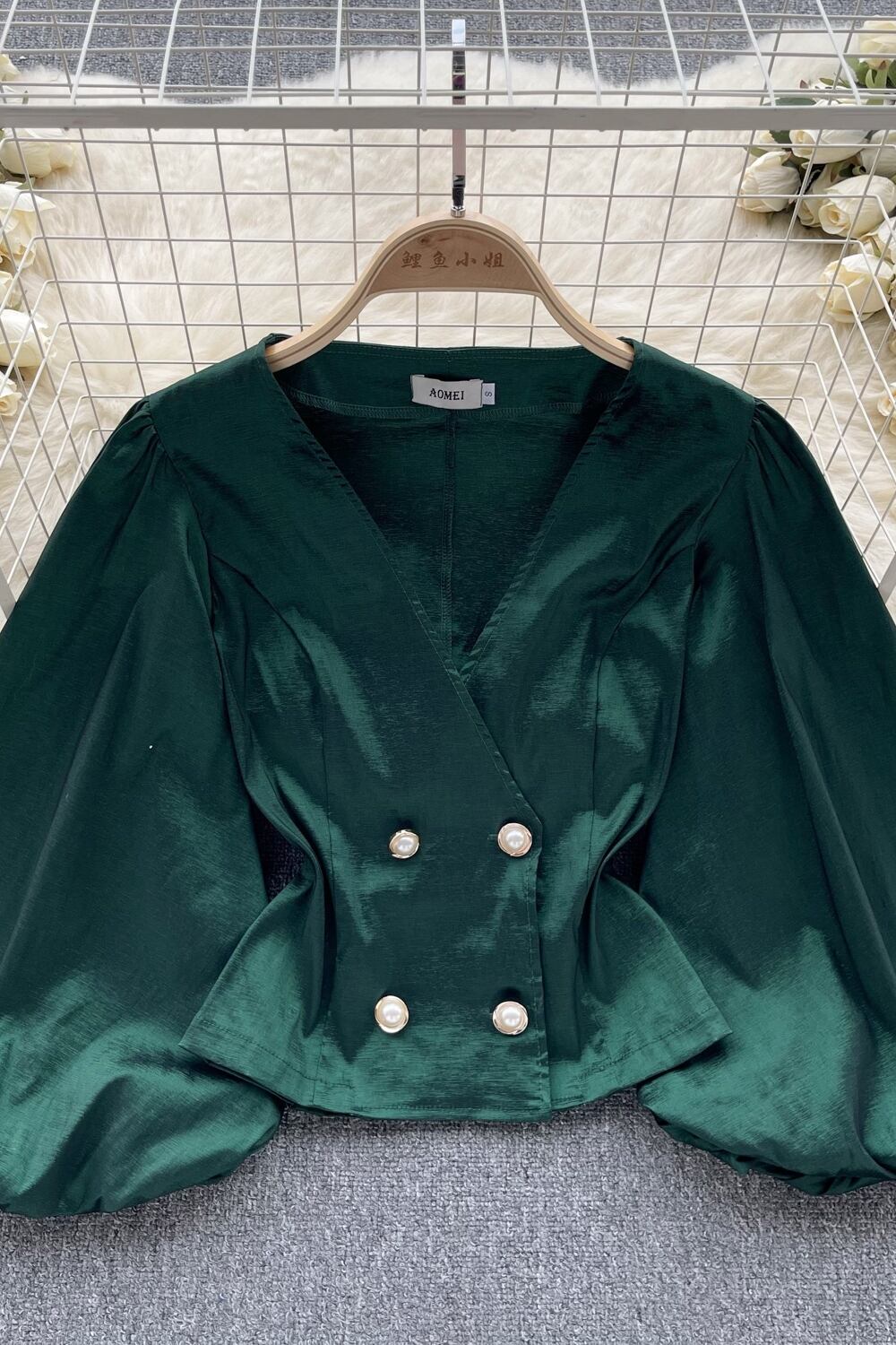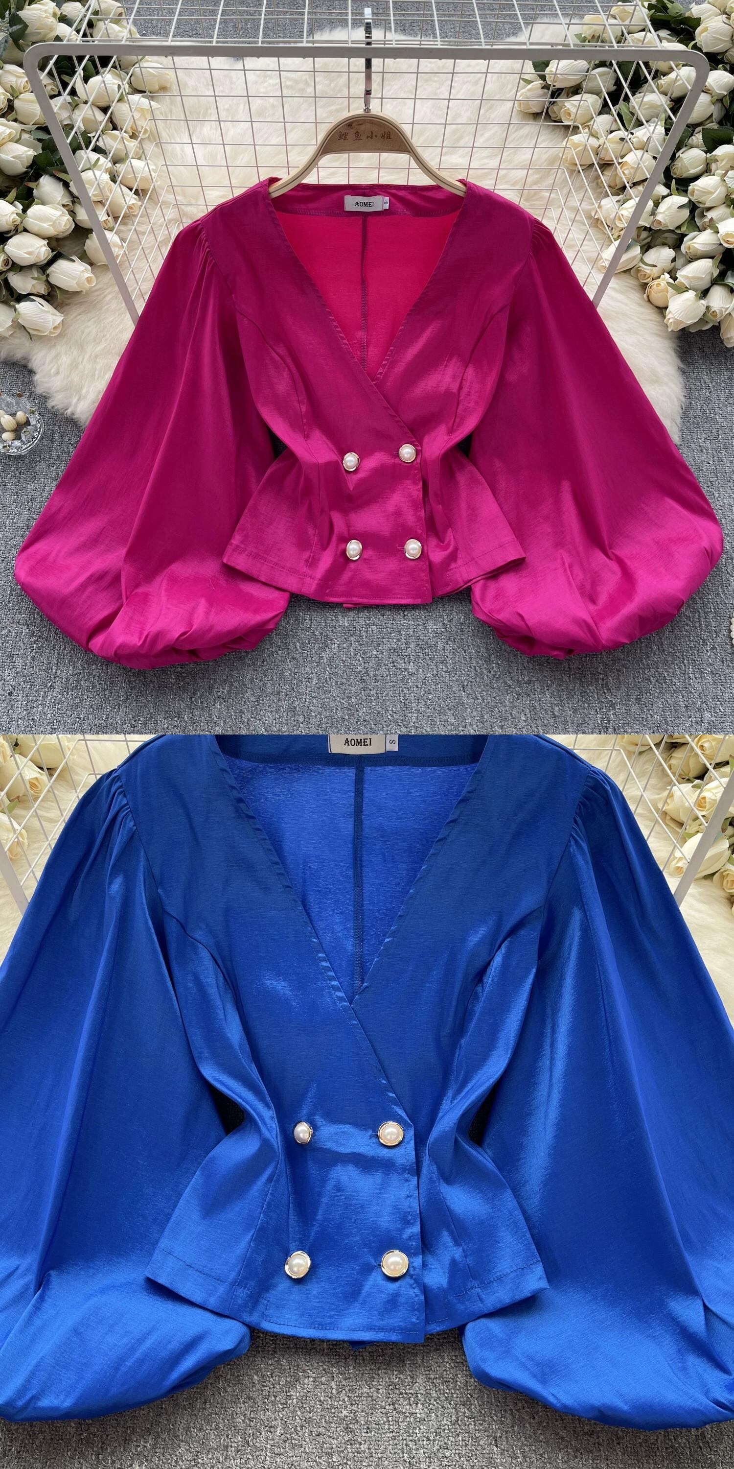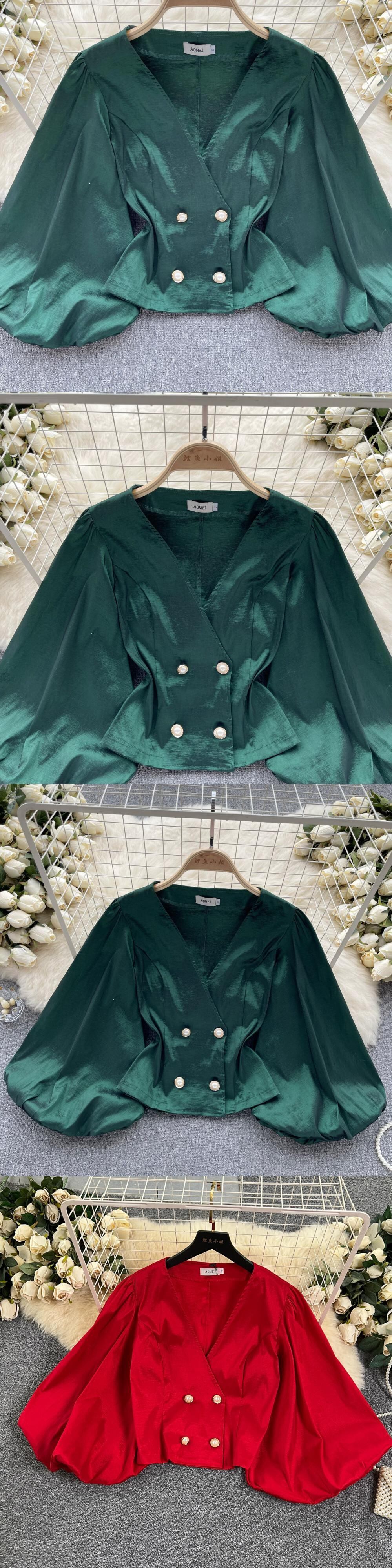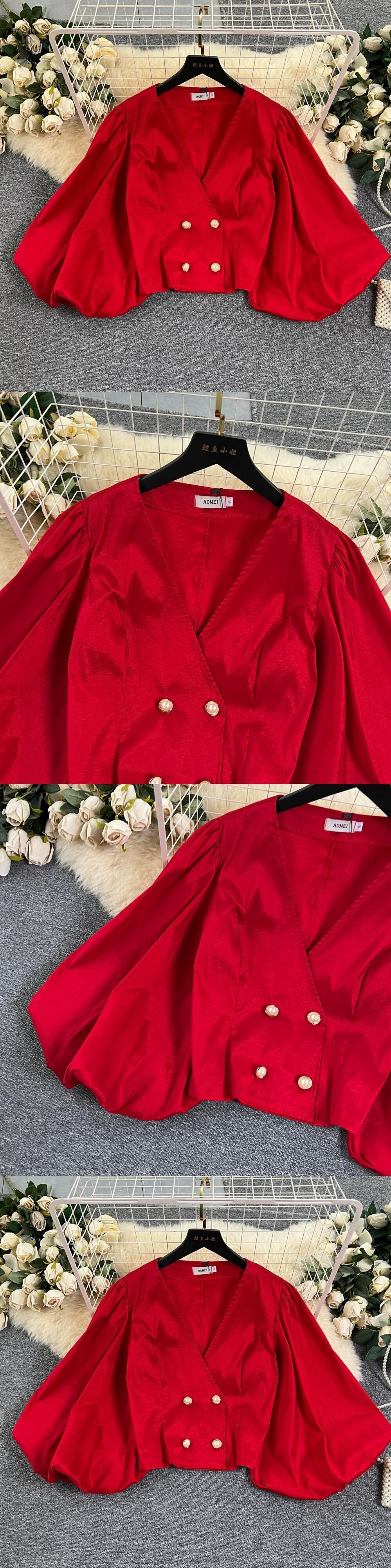 ヨーロッパとアメリカンスタイルのファッションハイエンドランタン長袖 V ネックシャツ女性の夏の新しいスリムショートシックなシャツ ロング サマー 夏物 Vネック ヨーロピアン lyxaj33118350988