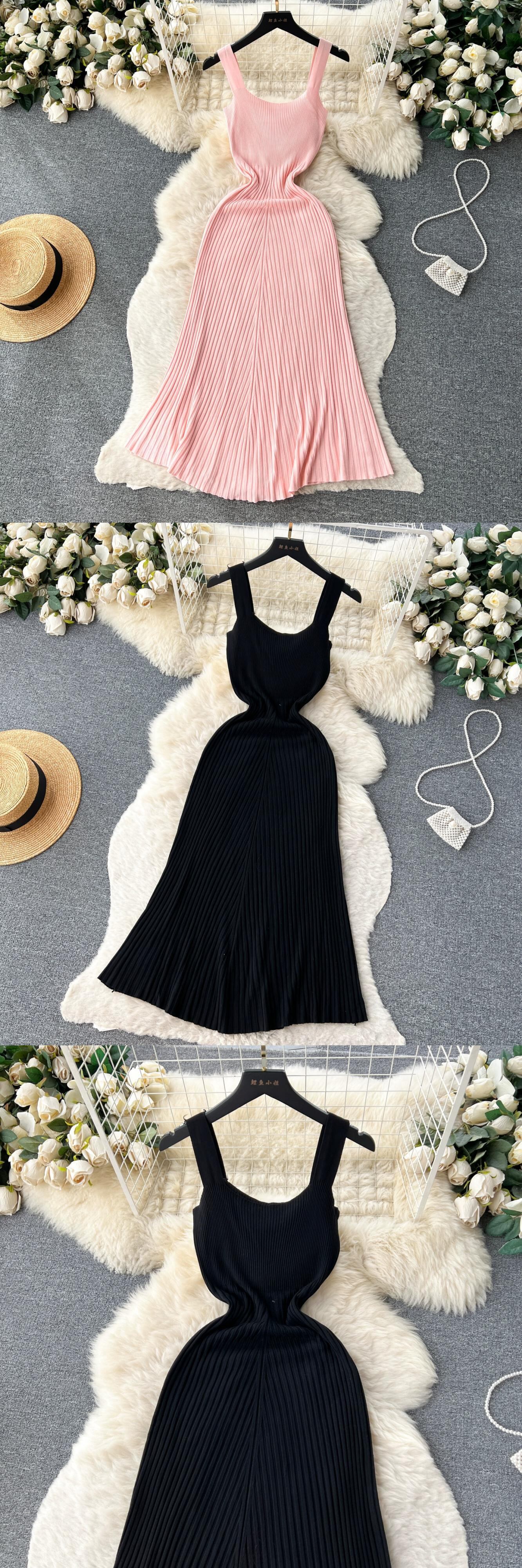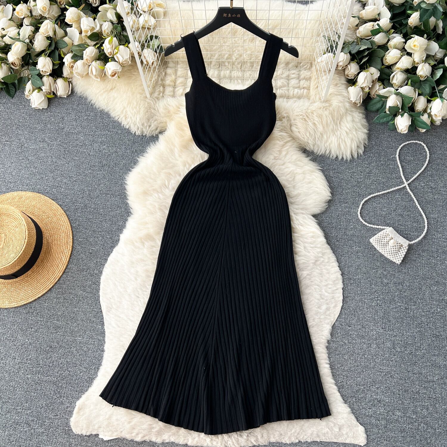 シックな夏ニッチレトロニットサスペンダーロングスカート女性のウエスト痩身カジュアル多目的ドレス サマー 夏物 lyxaj42130541638