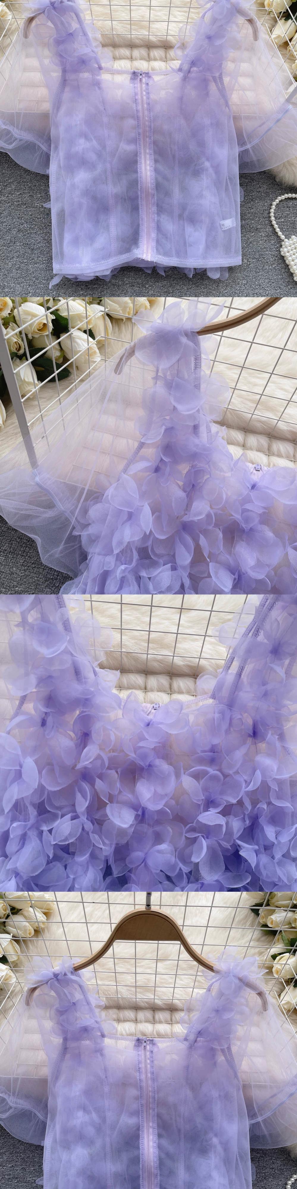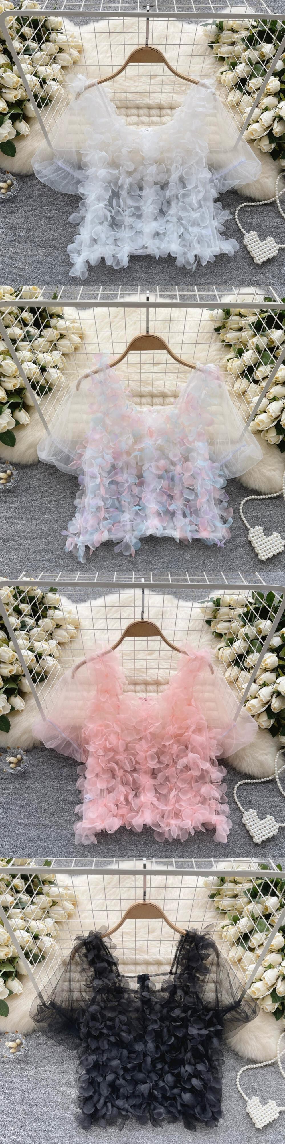フレンチレトロスタイルメッシュ立体花びらシャツレディース夏パフスリーブ甘くてシックな雰囲気のあるショートシャツ 大人ガーリー スウィート キュート カジュアル サマー 夏物 lyxaj13605564638
