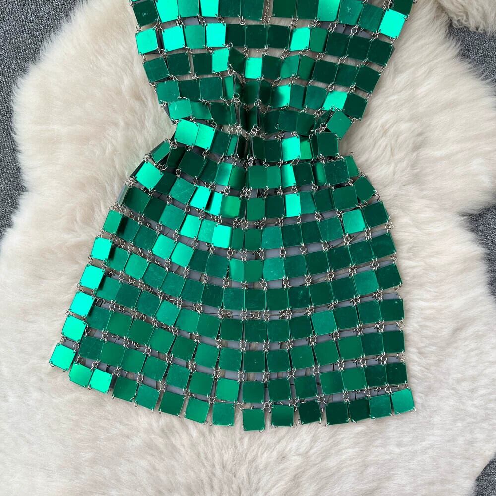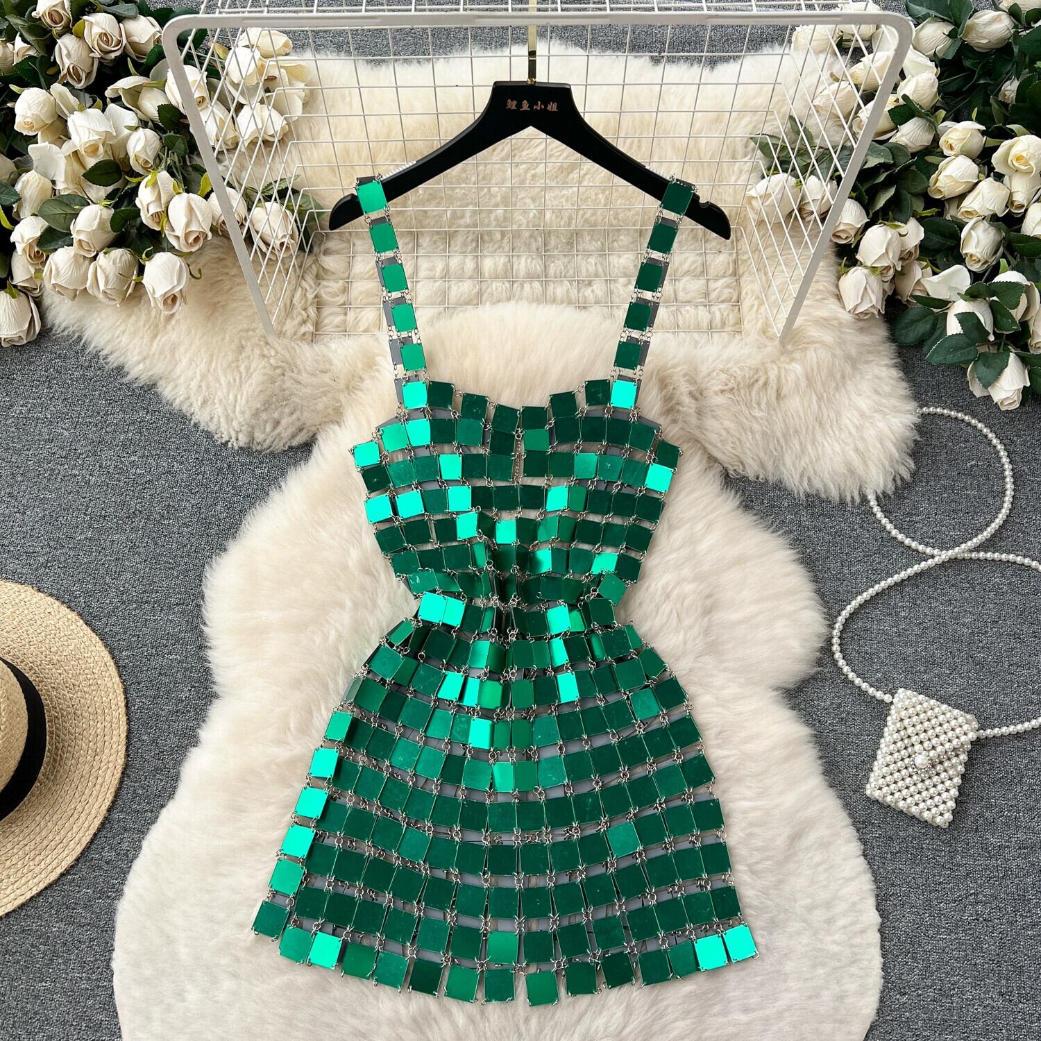 重工業スパンコールサスペンダードレス女性の夏中空バックレスデザインニッチ純粋な欲望バックパックヒップショートスカート サマー 夏物 リュック ピュア lyxaj12393122202