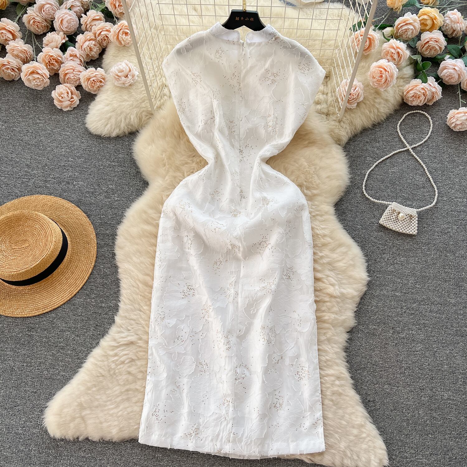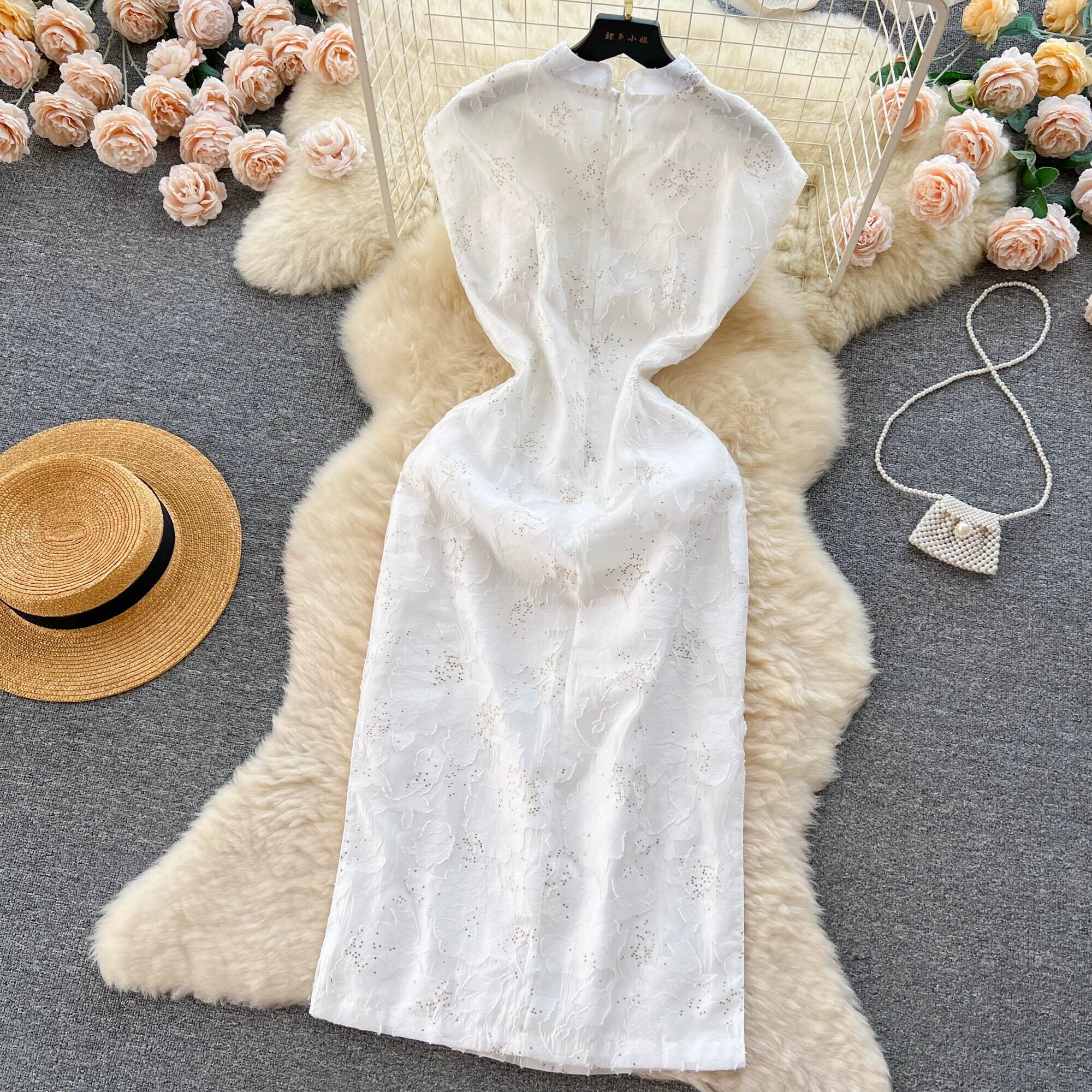 国民風レトロ改良チャイナドレスレースかぎ針編みドレス女性の夏のニッチ純粋な欲望デザインスリムロングスカート サマー 夏物 ピュア lyxaj49453551553