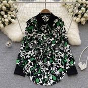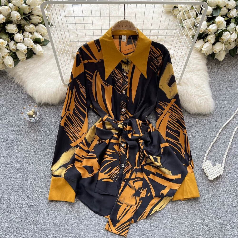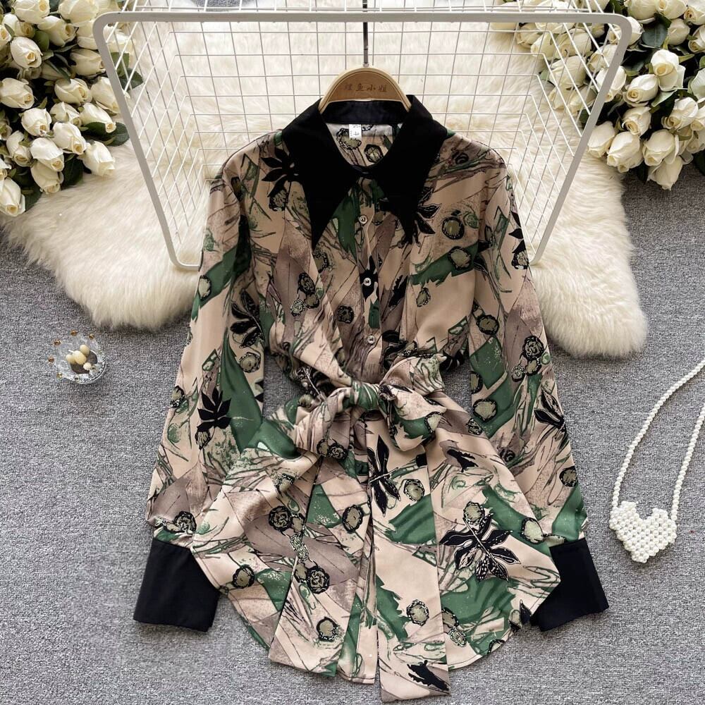 2022 秋の花柄シャツ女性のルーズレトロシフォンシャツミッドレングス怠惰なフリルトップ オータム 秋物 lyxaj20624945182