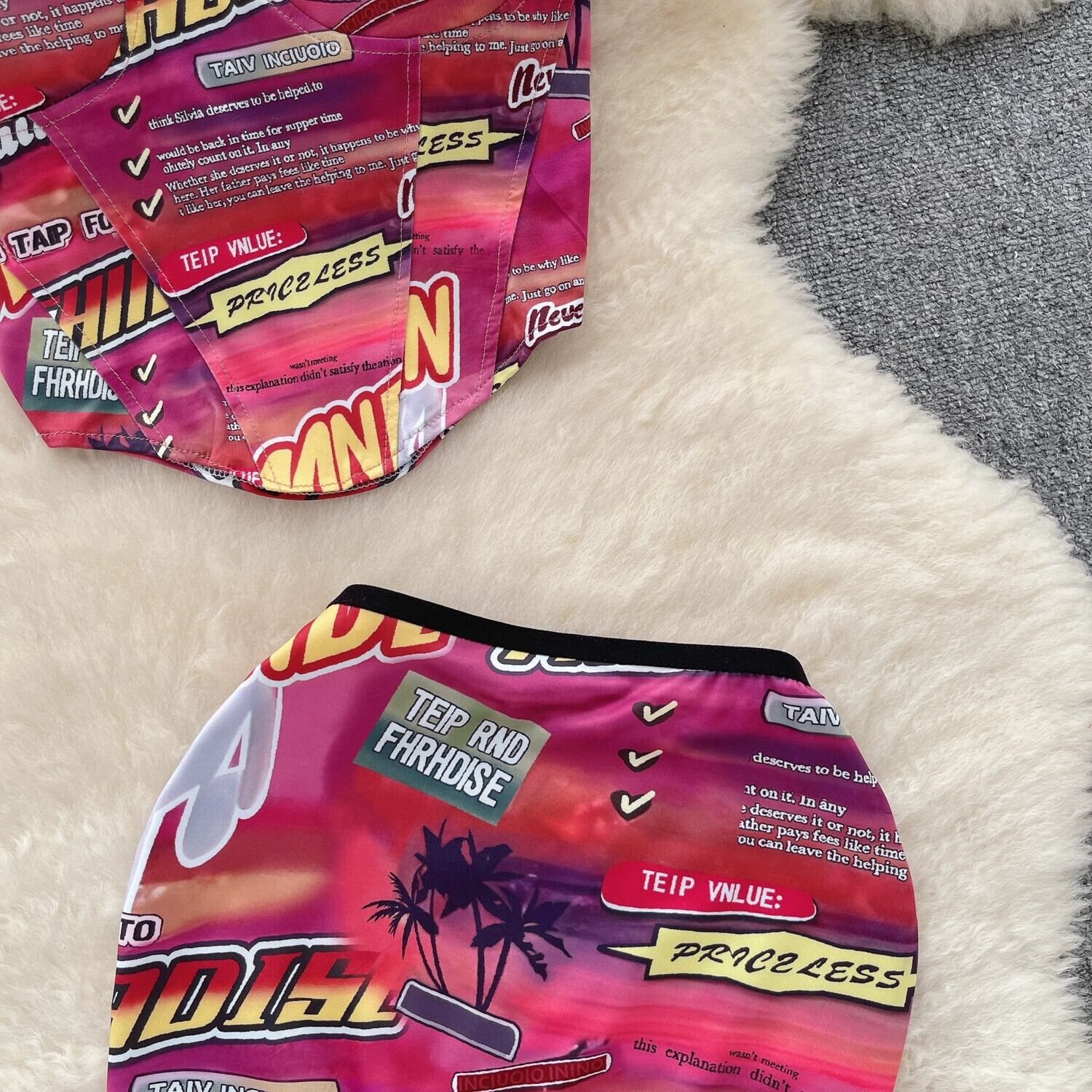 アメリカンレトロスタイルのプリントスーツの女性の夏のストラップレストップとU字型の裾+ハイウエストヒップスカート ハイウェスト サマー 夏物 lyxaj61409569001