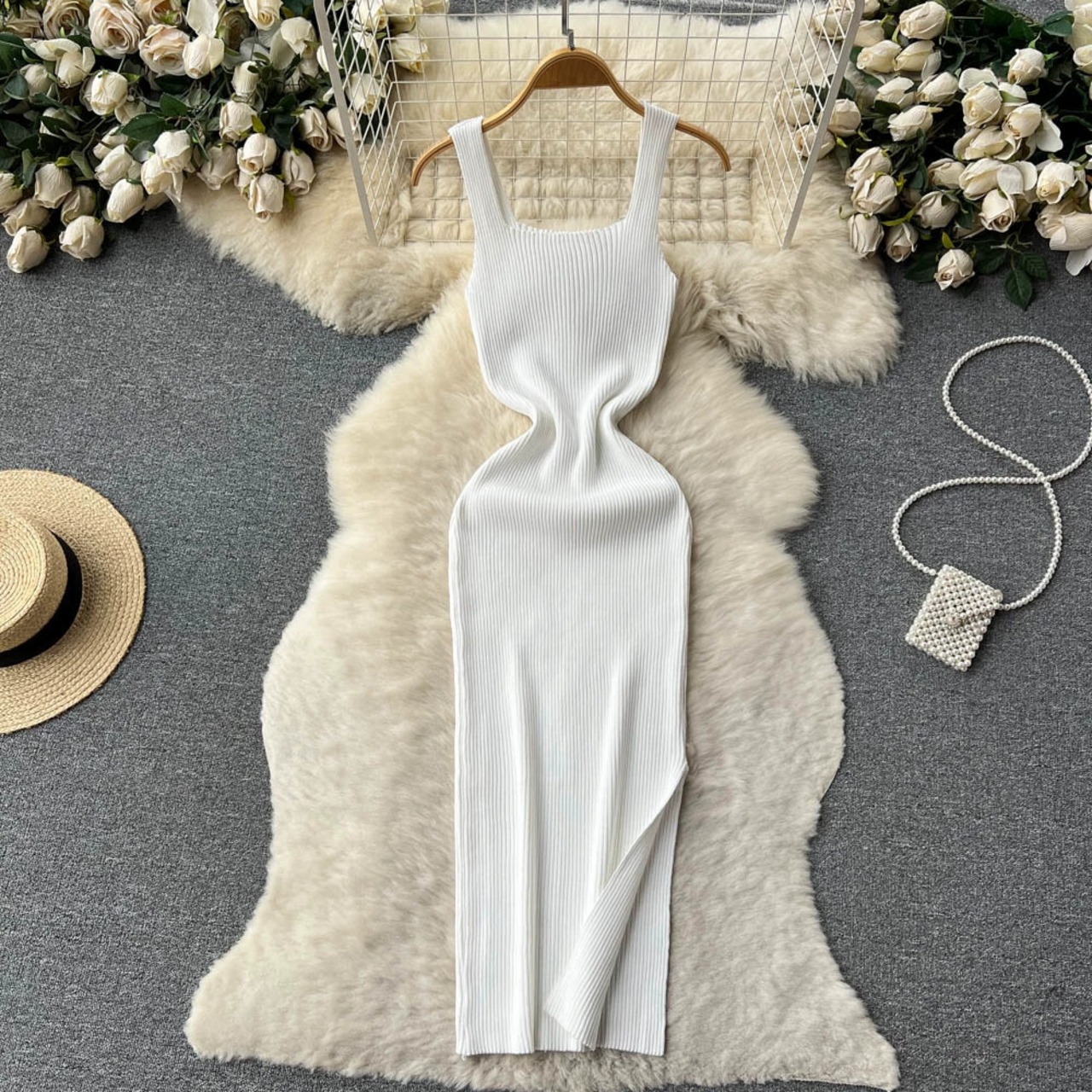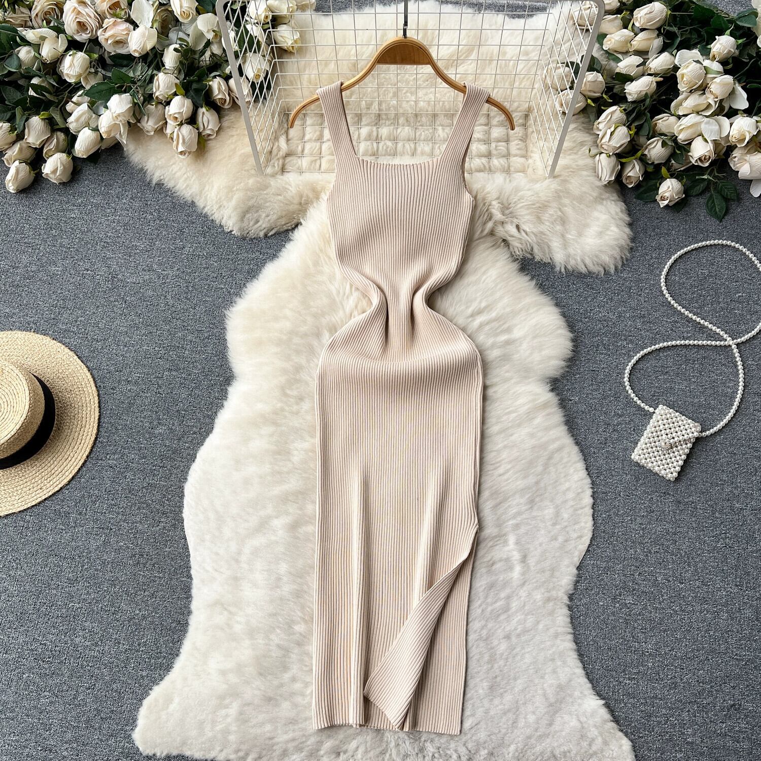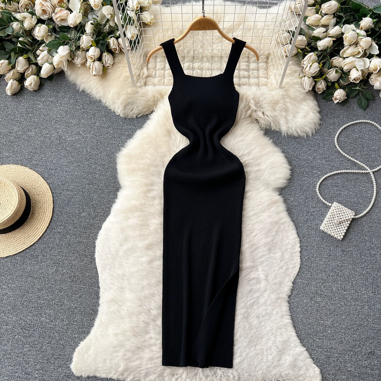 ヨーロッパとアメリカのセクシーなスカート夏ストレッチニットキャミソールドレススリムスリットヒップカバーワンステップスカート サマー 夏物 ヨーロピアン lyxaj23951432127