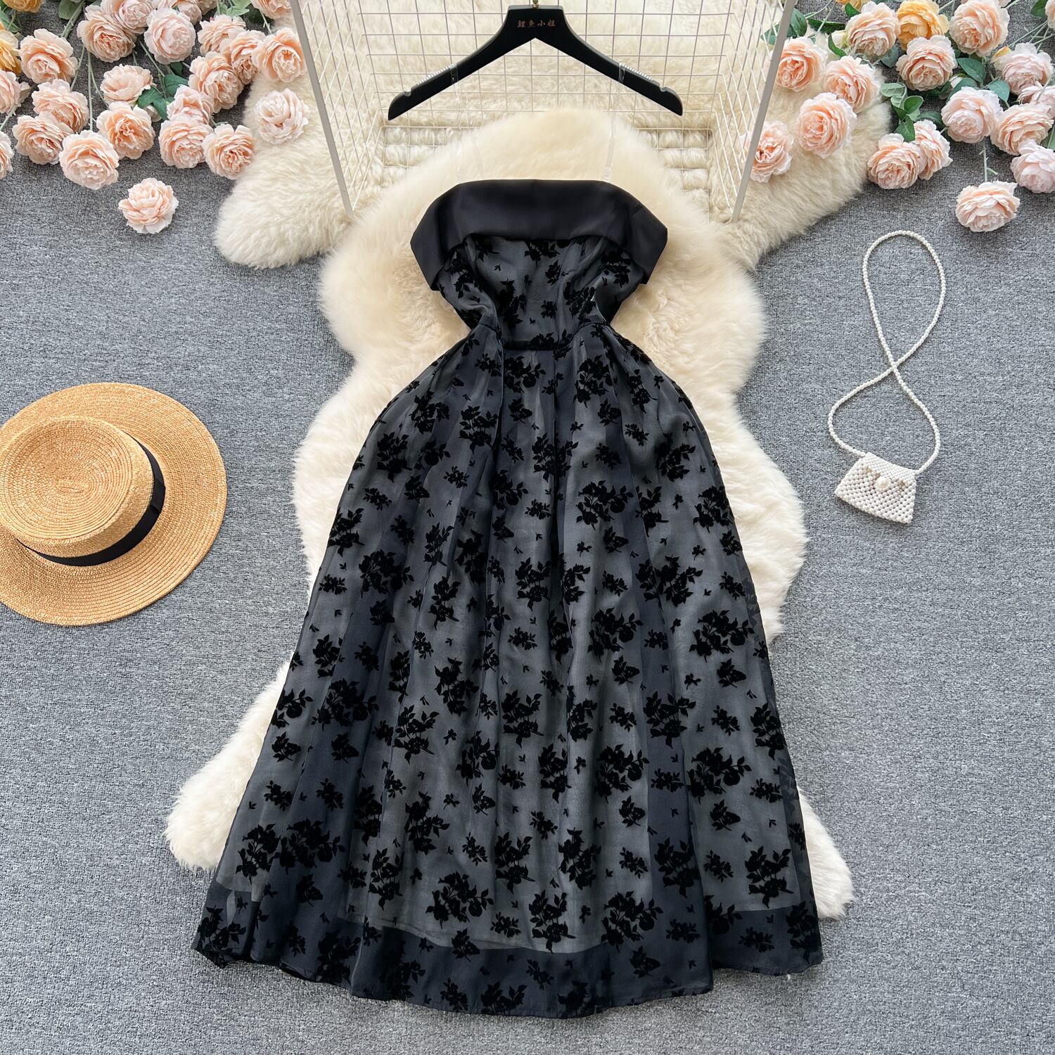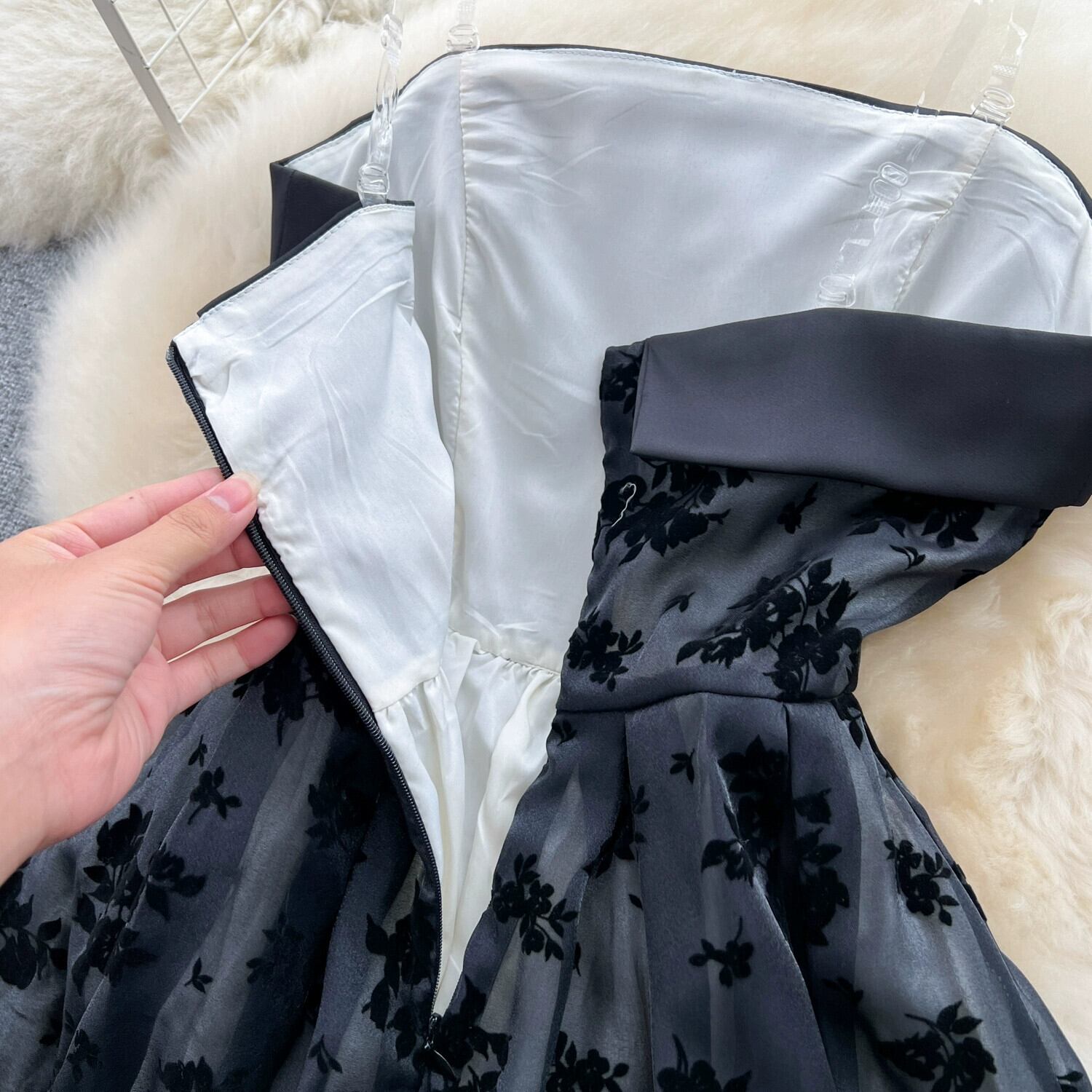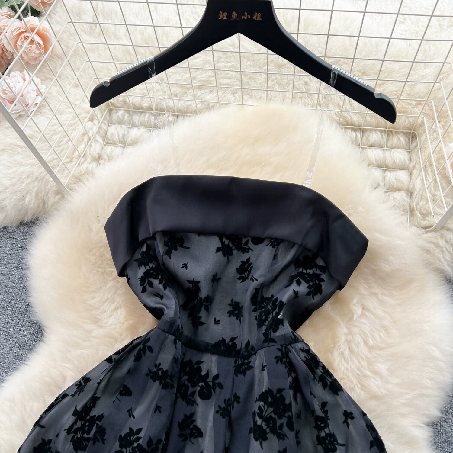 フランスのレトロなヘップバーン スタイルのジャカード ストラップレス メッシュ スカート女性スリム ウエストとシックなドレス lyxaj20128388549