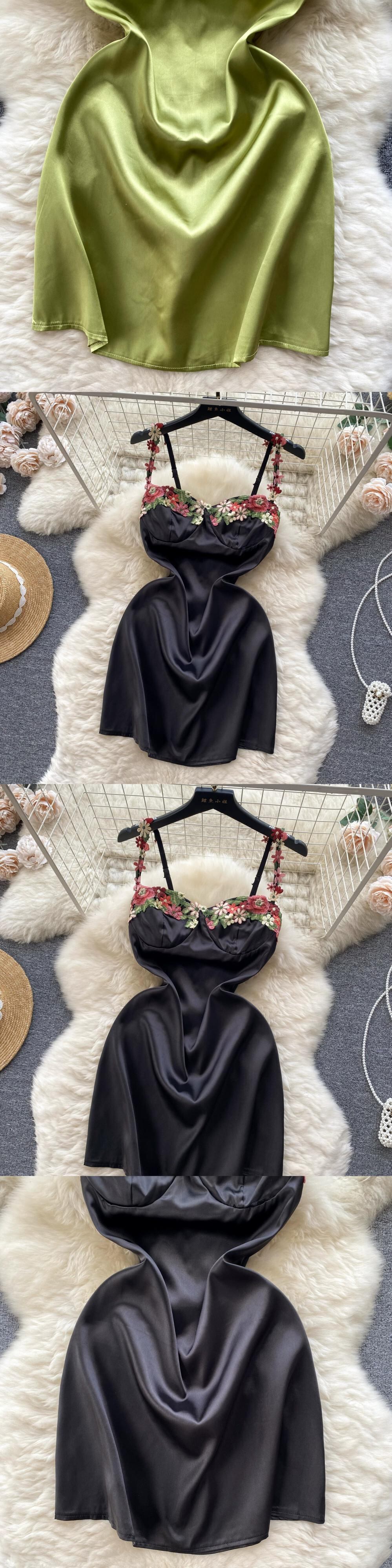 ヨーロッパとアメリカのニッチな純粋な欲望スタイルのサテンのドレスの女性の夏の刺繍レースのストラップレスのセクシーなショートスカート レッド サマー 夏物 ピュア ヨーロピアン lyxaj52687639769