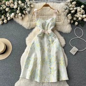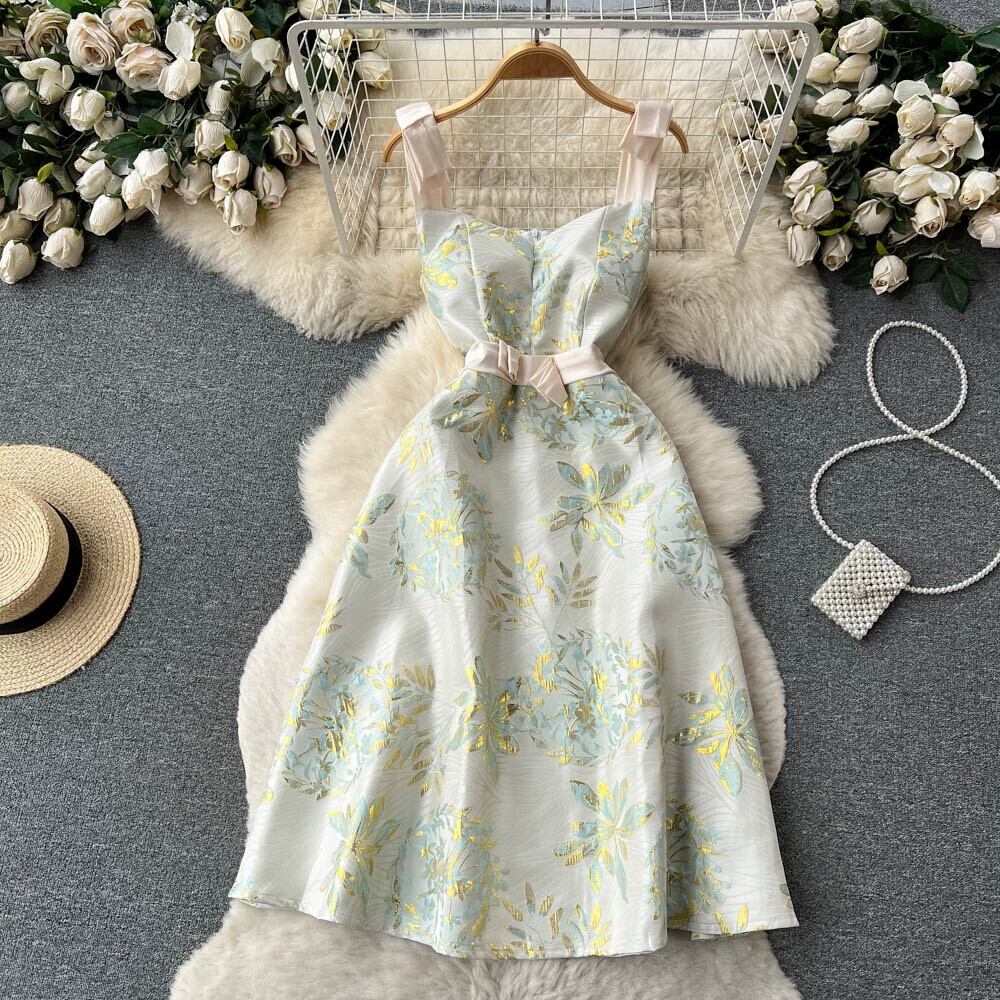 フレンチヘップバーンスタイルジャカードサスペンダードレス女性の夏の気質社交界ハイエンドデートドレス誕生日ドレス サマー 夏物 lyxaj77208805324
