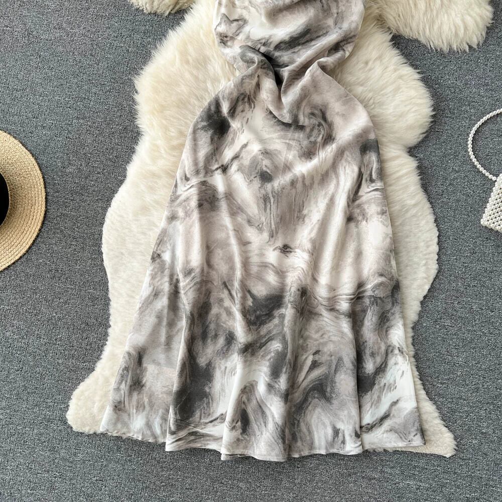 -終了水墨画プリントサスペンダーノースリーブドレス女性の夏の新モデルクロススイング襟尻フィッシュテールスカート サマー 夏物 lyxaj86504549642
