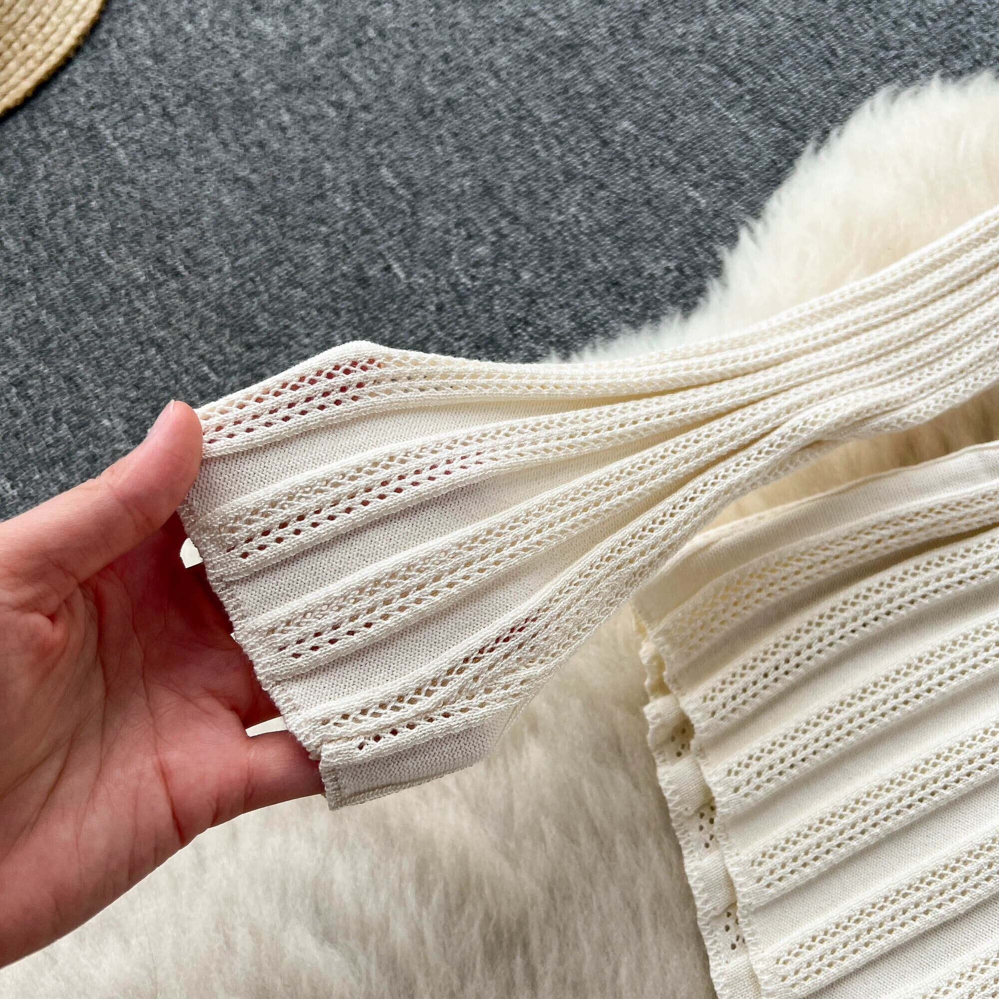スーツ女性のヨーロピアンスタイルの年齢を軽減するストライプのニット不規則なトップ弾性ウエスト弾性ワイドレッグパンツトレンディな エラスティック 伸縮 ワイドパンツ lyxaj16100392995